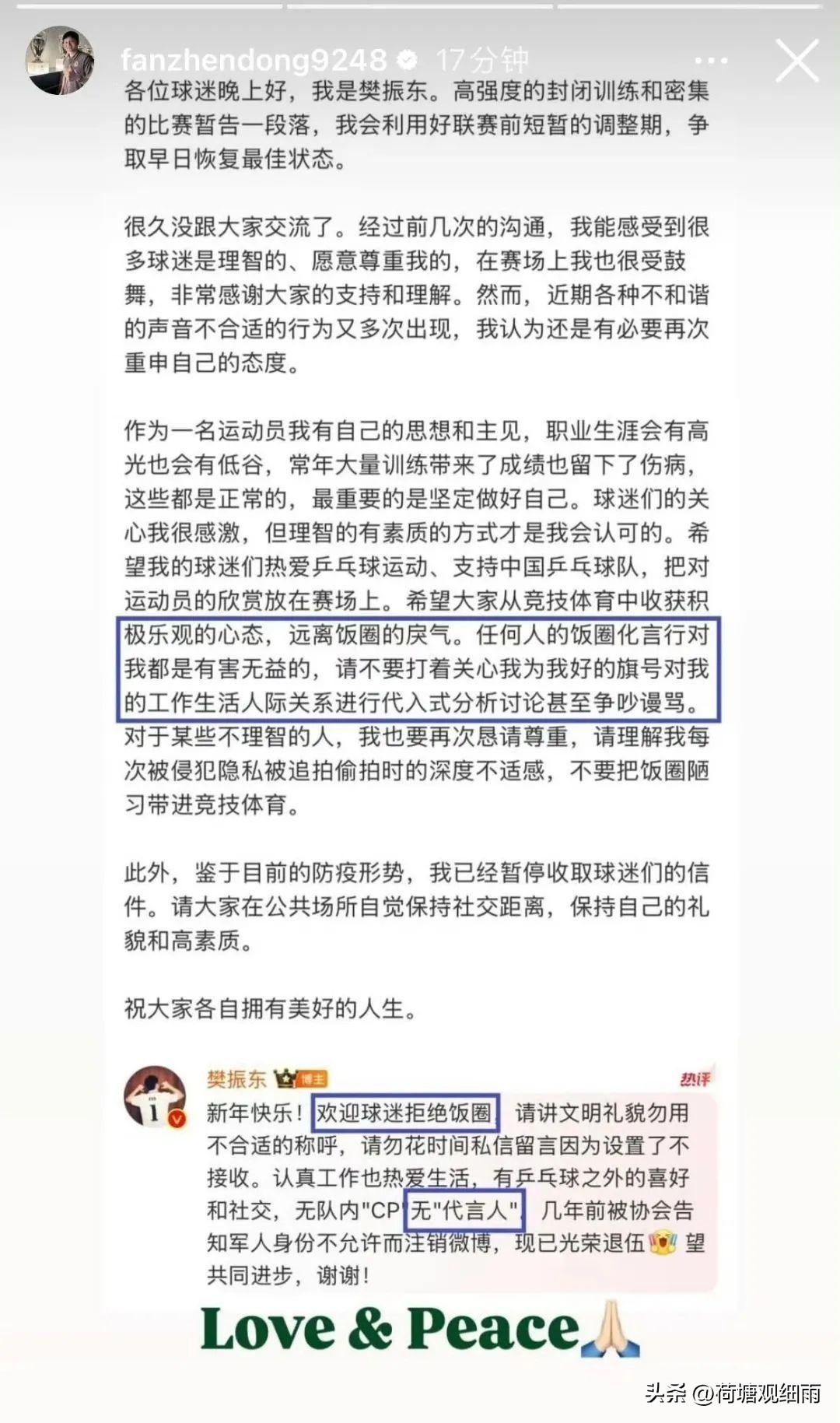 只有樊振东、王楚钦鲜明鲜明抵制饭圈 对崇拜的粉丝,多数国乒球员选择沉默,只有樊振东、王楚钦持明显抵制和反对态度。作为国乒新老核心主力,他们两个曾不止一次地在赛场上、采访中制止或反对饭圈极端粉丝的不良行为。 粉丝的对立、互撕,队员们不可能不受影响。欢迎球迷支持中国乒乓球队,希望大家关注赛场、为球员加油,这类不疼不痒的话,对狂热的追星崇拜者应该不会起任何作用。王楚钦 樊振东 孙颖莎