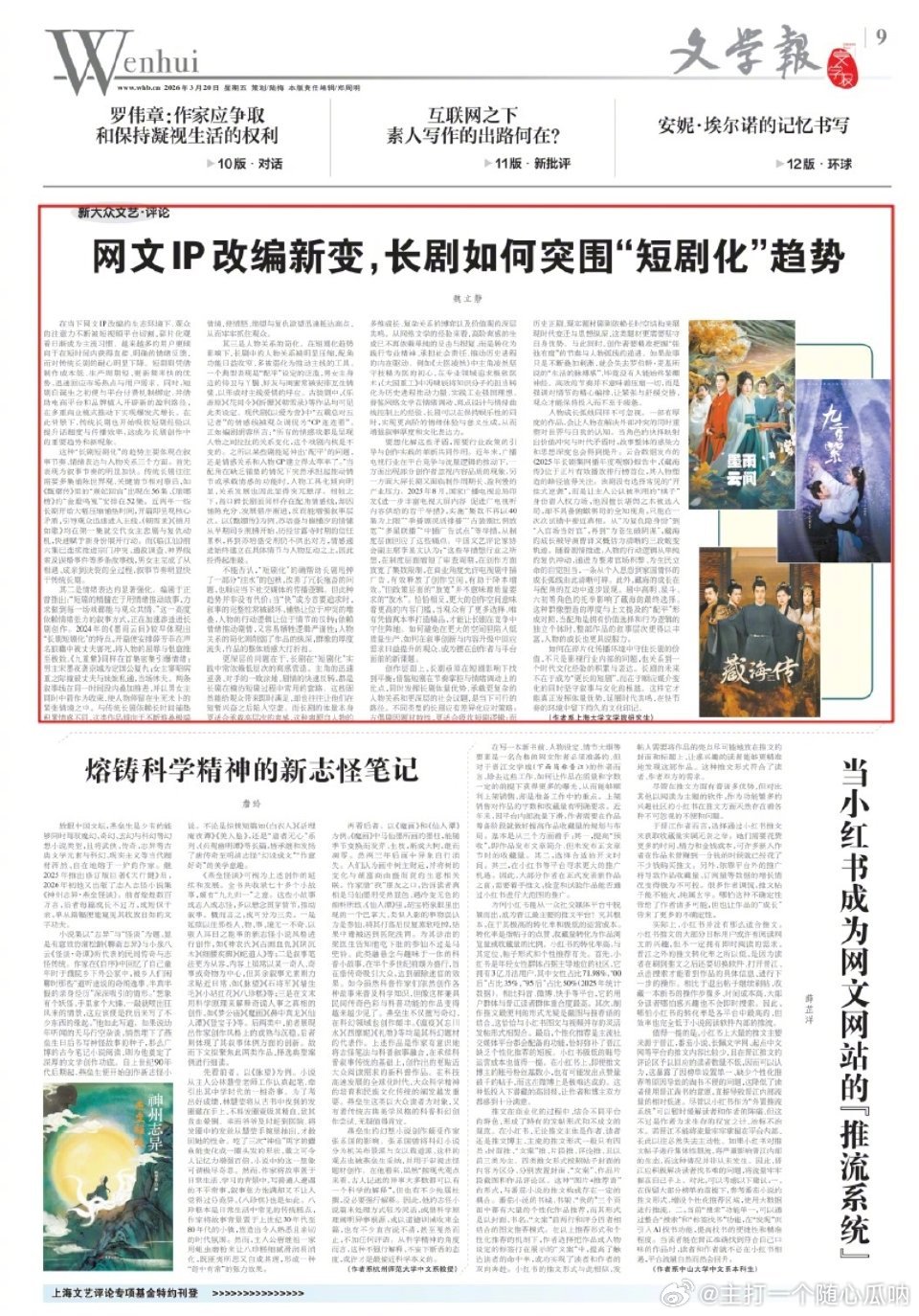 肖战《藏海传》开播近一年,文汇报再专题研究探索长剧的发展突破之处,真不愧是国剧之