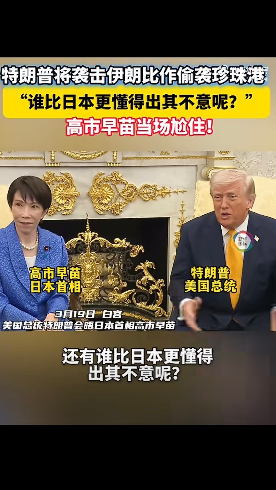 特朗普见高市早苗提偷袭珍珠港 懂子真是太有活了,当面开大:没有人比日本更懂偷袭