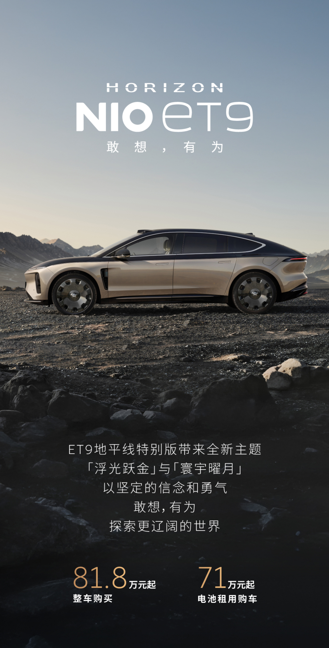 蔚来ET9地平线特别版,81.8万起整车购买,71万起电池租赁。这个双拼色和大轮毂,有感觉了。蔚来et9