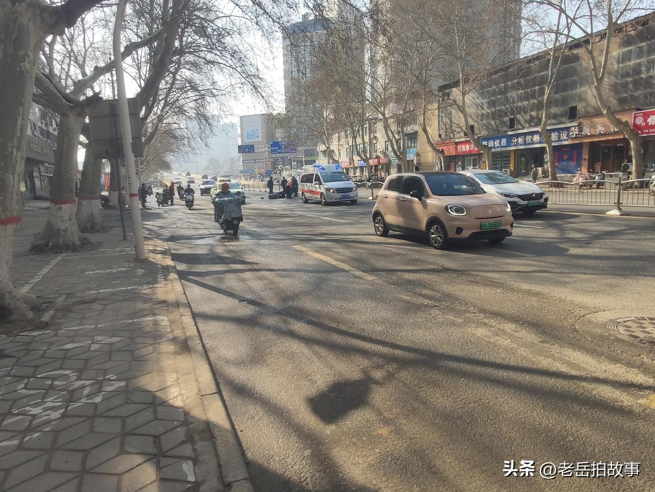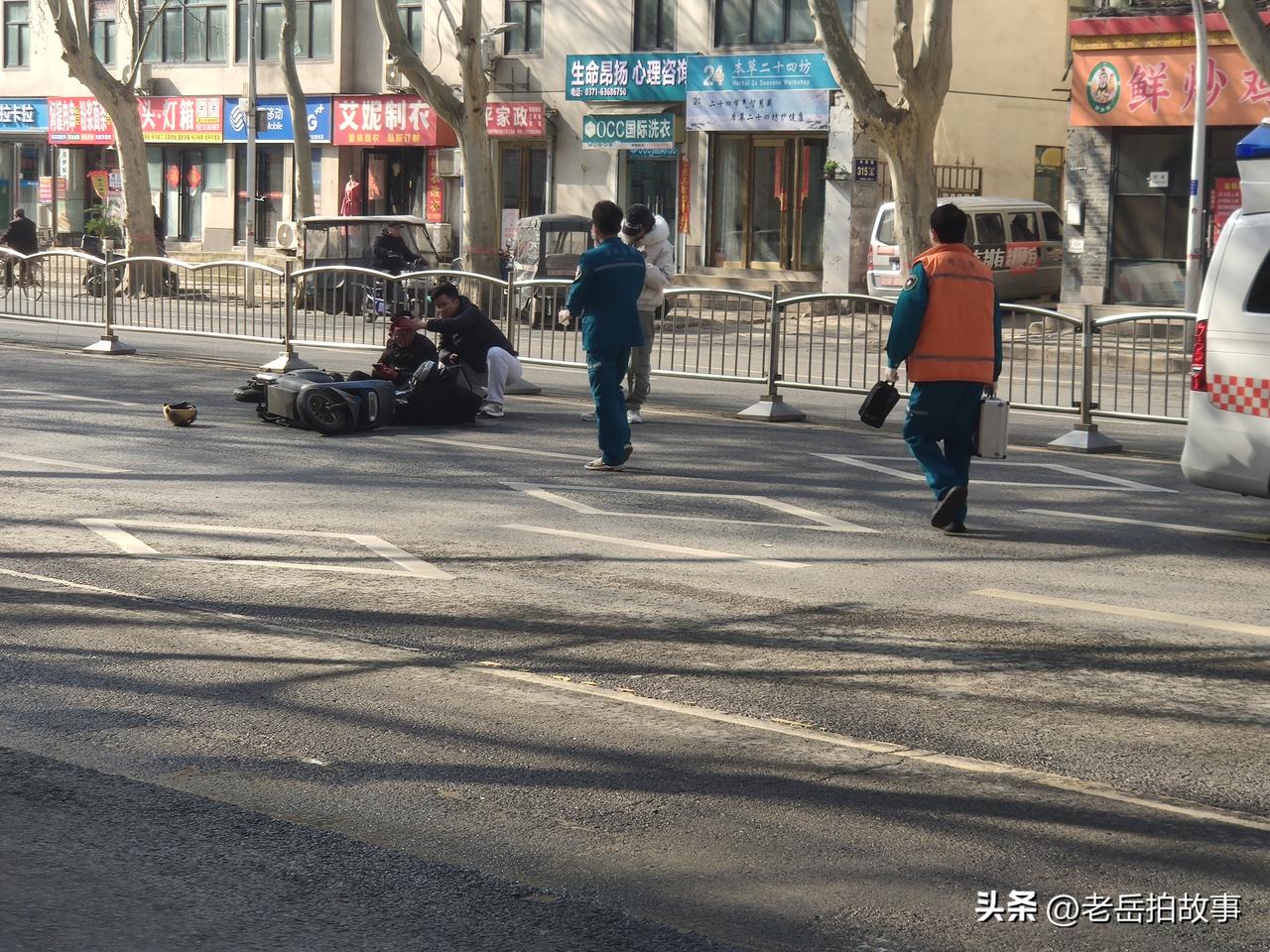 刚刚,郑州市金水区南阳路优胜南路交叉口偏北约一百米,南阳路金水路立交南向北下桥口附近快车道里发生一起电动车网约车交通事故,骑电动车男子头部受伤流血不止,被及时赶到的120拉走救治,目前交警已到现场进行勘察处理。 据网约车司机介绍,事发当时,他开车拉着乘客沿金水南阳路立交桥上有南向北下桥,骑电动车男子有东向西骑车横穿马路,躲闪不及发生碰撞,骑电动车男子头部受伤。现场围观者感叹:多亏骑电动车男子戴了头盔,否则会更严重。 此次交通事故具体情况以官方发布为准。在此提醒大家上路需谨慎,骑车需小心,并牢记佩戴安全头盔,关键时候真能救命!
