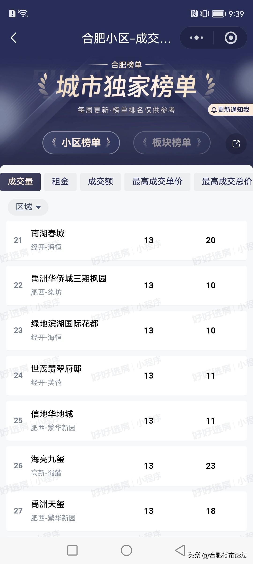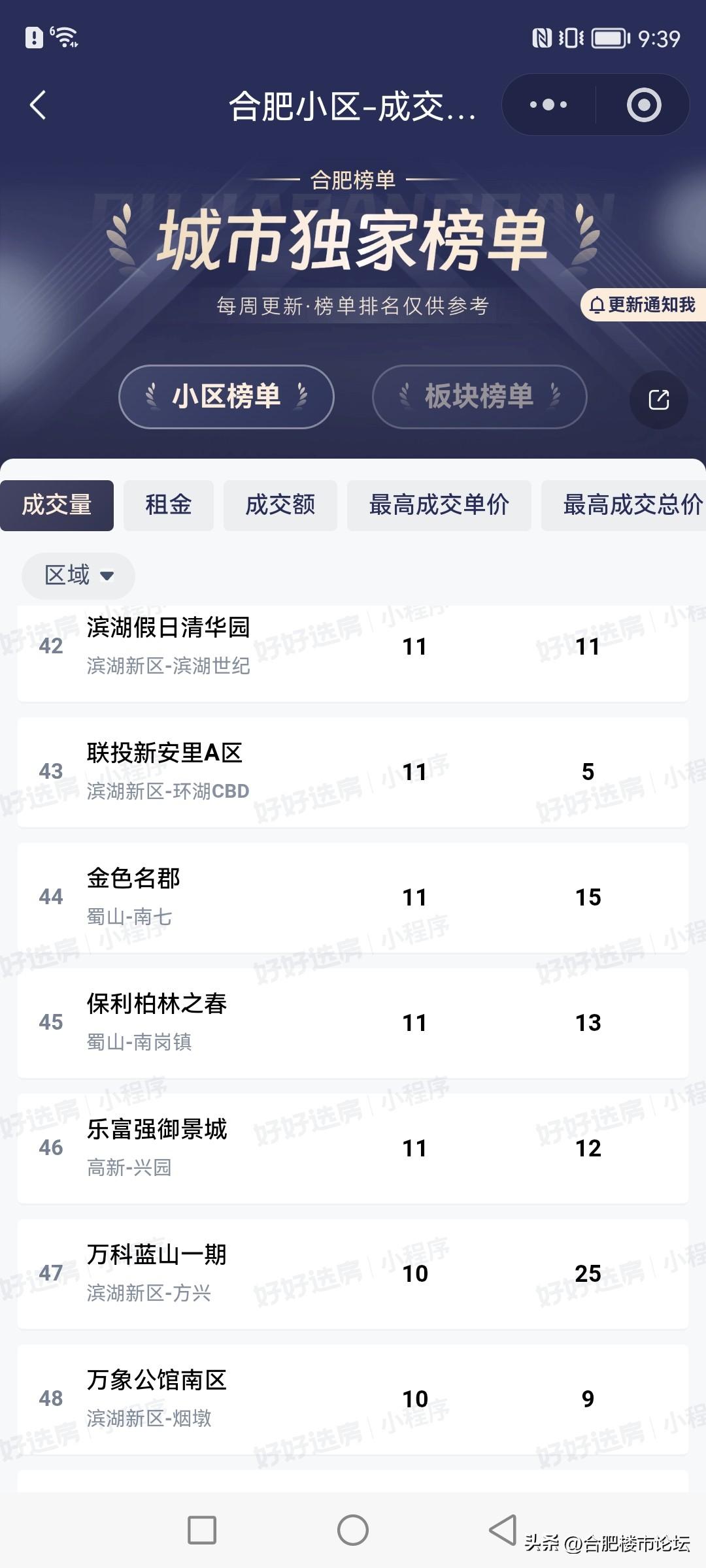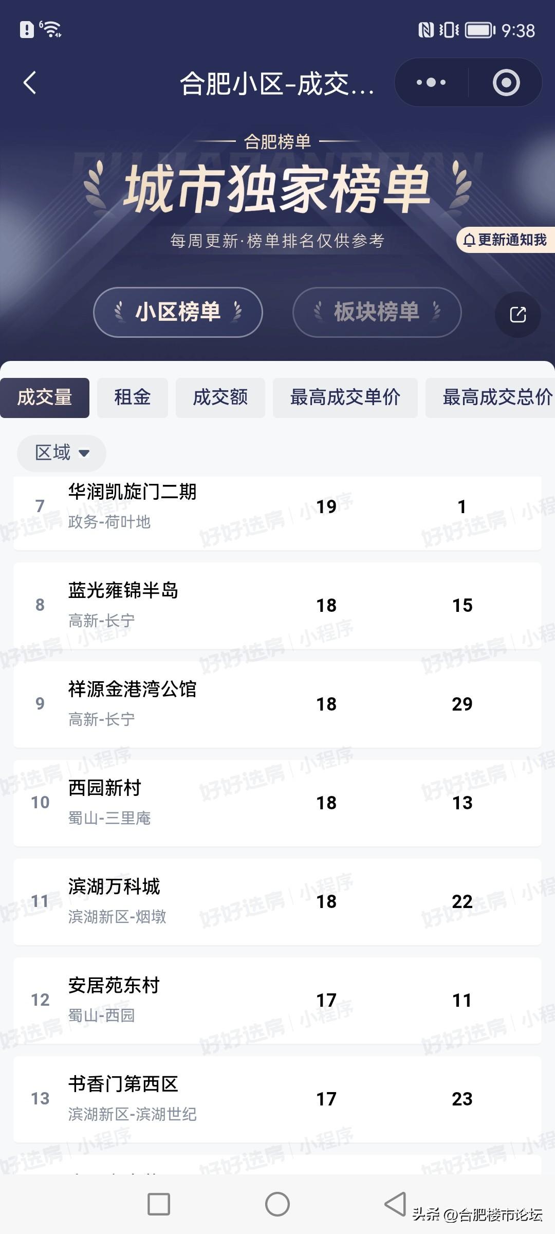 都说最近合肥二手房成交的多,看看到底是哪些小区卖的多。滨湖新区的卖了不少。
