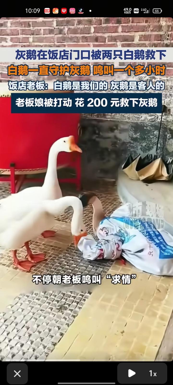 3月3日,广东广州。顾客将一只待宰的灰鹅带到饭店门口,店内两只大白鹅见状,立刻上前守护灰鹅身边,不停的朝着老板鸣叫“求情”,坚守一个多小时不离不弃。顾客离开时,两只大白鹅一路跟随鸣叫。老板被这份深厚的情谊所打动,主动与顾客沟通,顾客也被两只鹅的表现所打动,最终花了200元将灰鹅买下 万物皆有灵,众生皆有情。不只是人类懂得牵挂与不舍,动物之间同样有共情、有守护,这份跨越物种的温暖,也让我们看见善意与共情,本就藏在世间每一个角落。