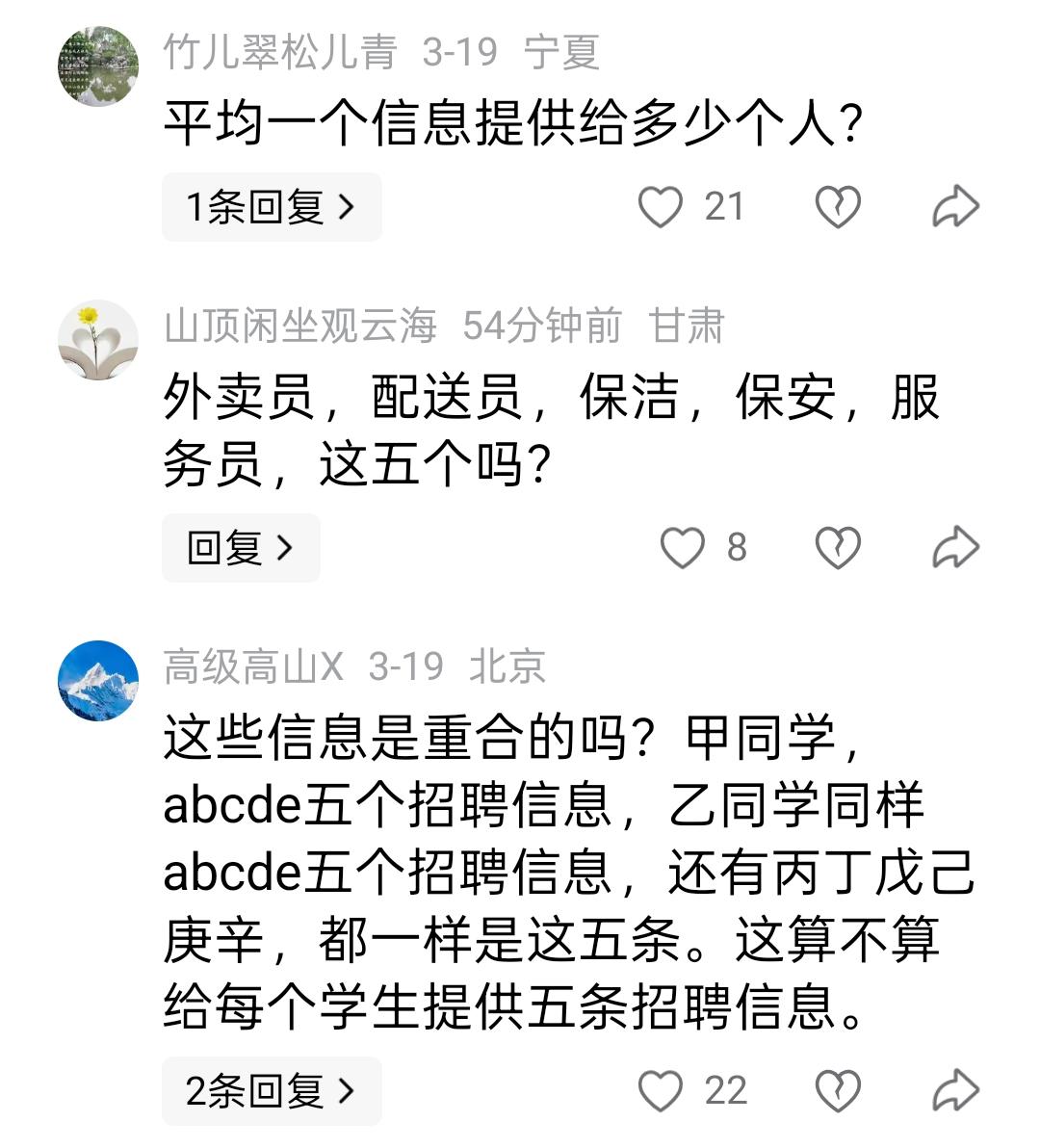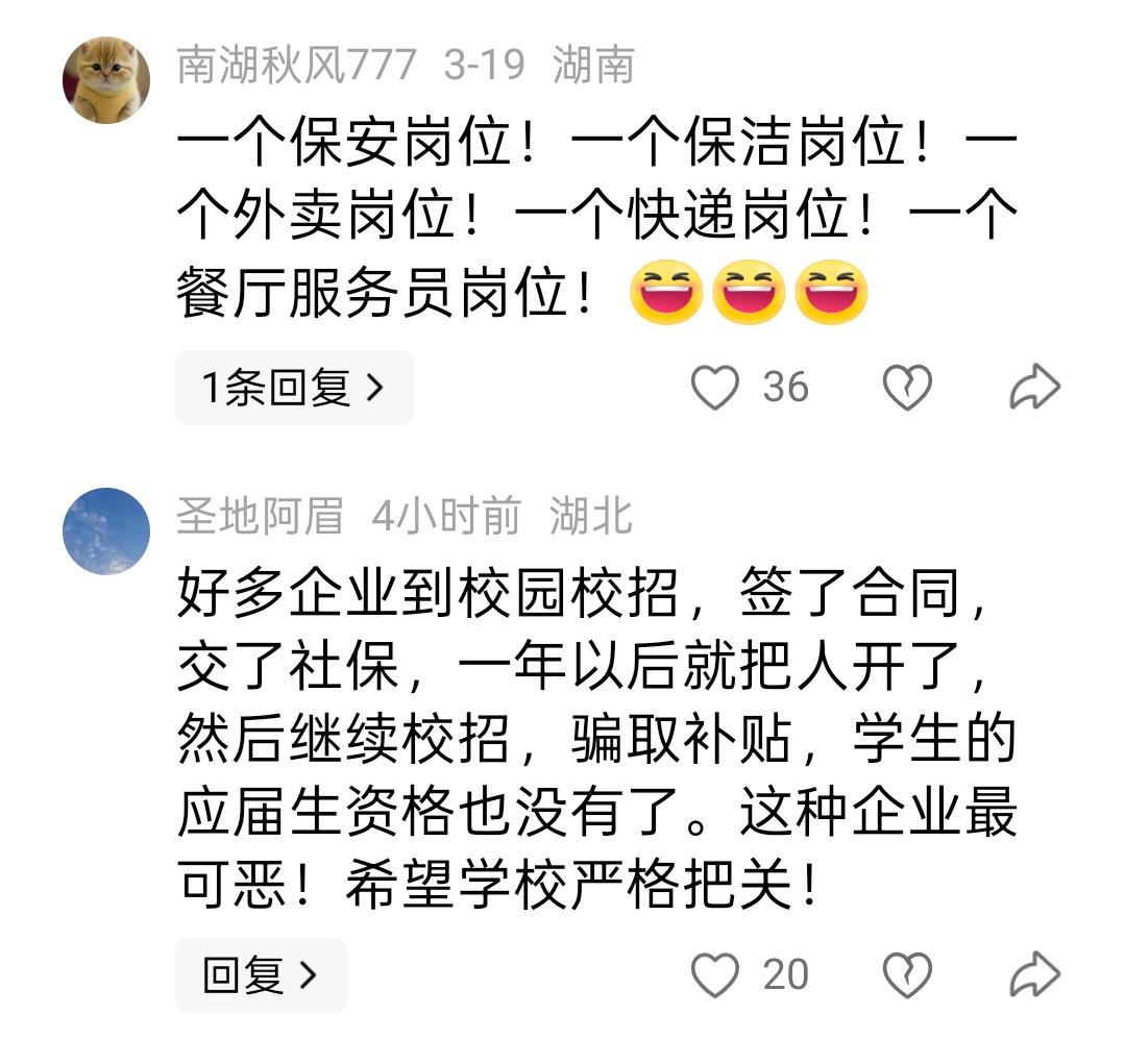 为每名有就业意愿的毕业生提供不少于5个岗位信息 ,能否提升校园招聘实效,促进高质量就业,不少网友认为:难! 据《北京日报》报道,教育部定于3—5月在全国范围内开展2026届高校毕业生“春季促就业攻坚行动”(以下简称“行动”)。 行动有多个方面内容,在第三部分谈到加密组织校园招聘活动时称,推进公共就业服务提前进校园,持续实施“万企进校园”计划,举办小而精、专而优的专场招聘,为每名有就业意愿的毕业生提供不少于5个岗位信息,提升校园招聘实效。 不少网友认为,毕业生能否顺利就业,不在于可以为他们提供多少岗位,而在于能否实现高质量精准匹配,华而不实的“数字游戏”,解决不了实实在在的就业难题。 首先,这5个岗位都是什么岗位,其实很有讲究,是外卖骑手、滴滴司机、家政服务,还是公务员、事业编、央国企的岗位 ,完全不是一回事。 其次 ,这5个岗位对求职者来说,是否具有唯一性。也就是说,这5个岗位如果不具有唯一性,既能推荐给张同学,也能推荐给李同学,还能推荐给王同学,那么强调数量的背后,其实有可能是在玩一场“数字游戏”。 最后,对于毕业生而言,就业的满意度,不仅在于可选择的岗位多、能够顺利就业,而在于能否真正安心稳定地工作。有些用人单位本身体量有限,但是为了完成吸纳毕业生就业任务,只好采用先招聘后解聘的手法瞒天过海,这样的就业毫无价值和意义。 解决毕业生就业问题是一件大事,教育部能够从多方考虑对相关工作进行部署,这当然是一件好事。但是,如果工作安排脱离实际,不能着力破解毕业生就业的难点、痛点、堵点问题 ,促进高质量就业很难有起色。 对于相关部门来说,促进毕业生就业,不能总是站在自己的角度考虑问题,想到应该给他们什么,而是要站在他们的立场先找对策,关心他们最需要什么。 促进毕业生高质量就业,是实施就业优先战略的重要内容。站在人生的十字路口,寻找未来的方向,毕业生需要的不是毫无意义的岗位数量,而是高质量的精准匹配。