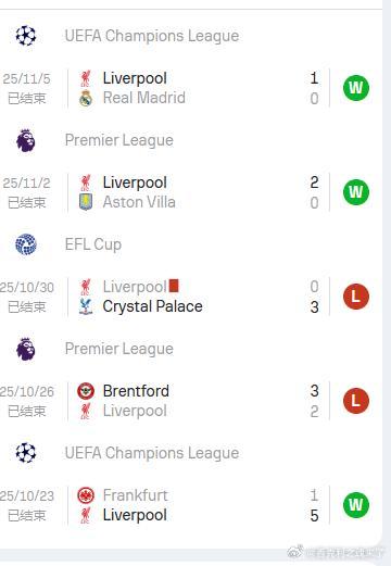 0-3埃因霍温,0-3曼城,0-0阿森纳,0-0利兹联,2-2富勒姆 又是补时被扳平 当时是传控失败,被迫转型