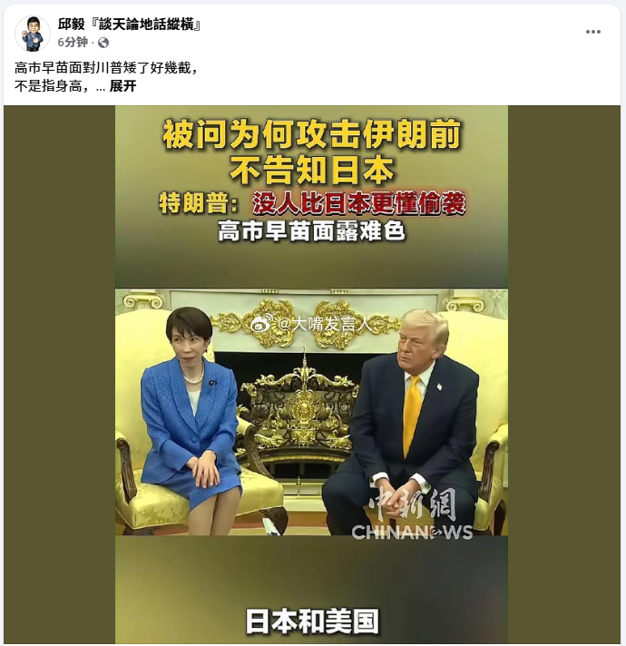 邱毅说高市早苗见了川普“矮了好几截、不是指身高,而是指心理层面”其实湾湾也是如此,赖皮德、蔡某文哪次窜访停机美国的时候,不是矮三分呢。会见西方低层面官员时,湾湾政客总是客客气气、笑嘻嘻低三下四的模样