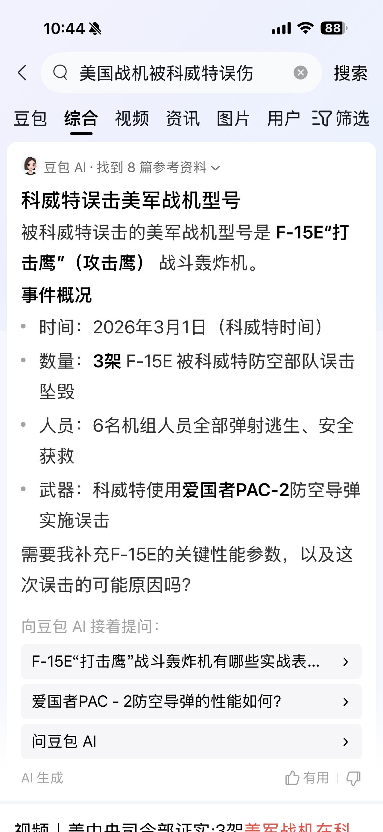 美国防部长证实:一架F-35战机被伊朗防空导弹击伤迫降。 我大概数了一下,美伊冲突至今,美国和以色列损失、损伤的飞机大大小小一共有15架(不一定准确)。 这次的F-35战机被击中,首次被美国国防部确认,之前都是友军误击、空中加油失误等原因。 这算是伊朗防空系统首次取得,被交战双方确认的战绩! 图片来自头条,侵删!