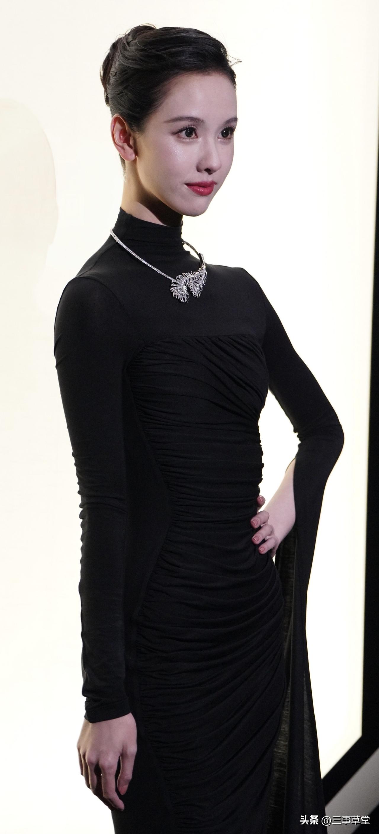 像矜贵黑天鹅颈间点睛的一缕白羽!一袭黑裙勾勒身材的同时呈现出简约高级好品味,搭配复古盘发整个人星光熠熠真的美到发光!