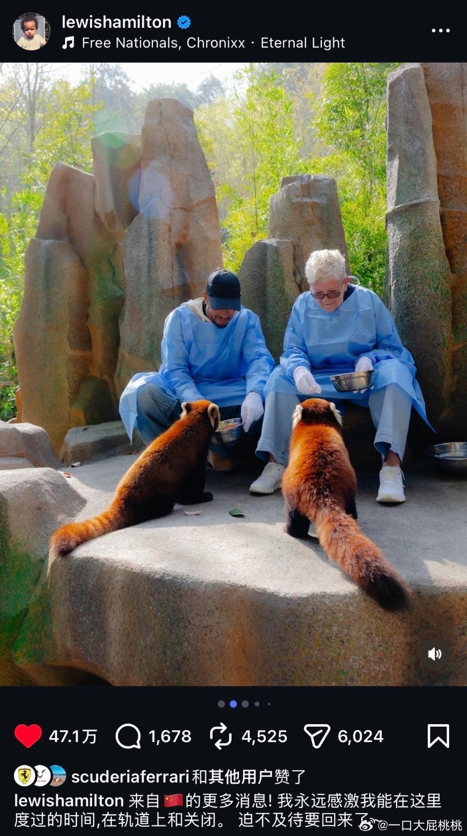 汉密尔顿ins发了自己在🇨🇳当熊猫饲养员的一天,别说穿这饲养服还挺帅呢