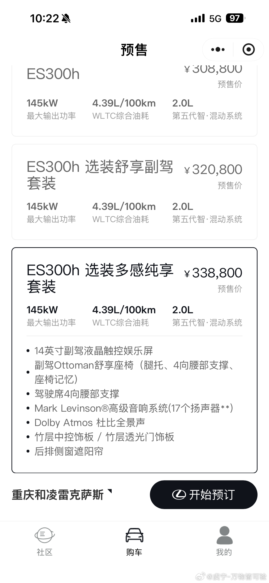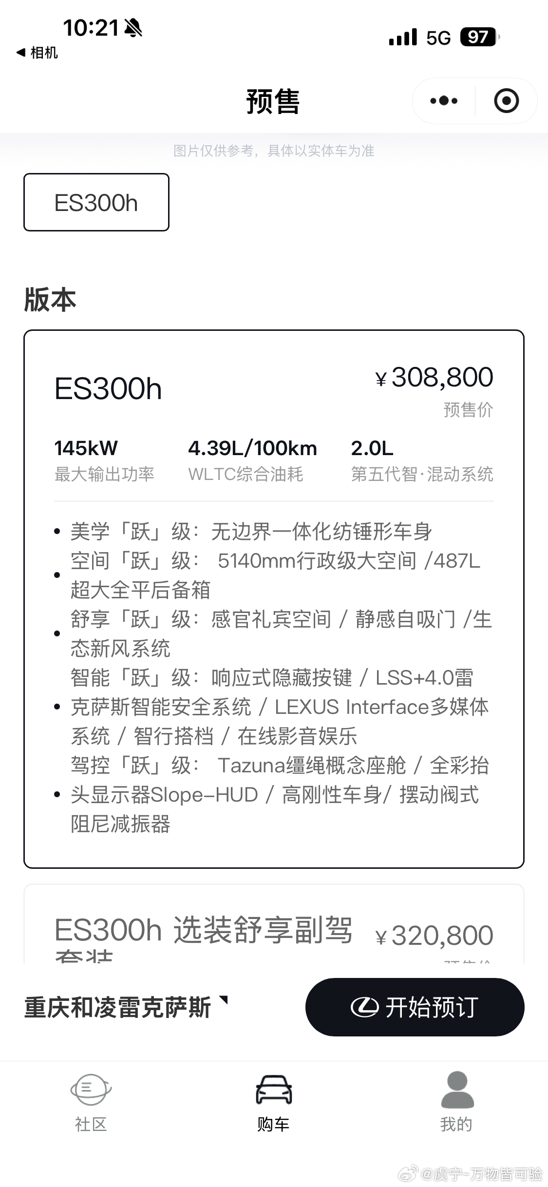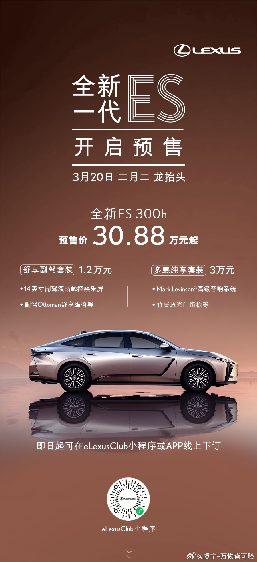 雷克萨斯的新ES出预售价了,2.0混动的ES300h,原装进口……30.88起?
