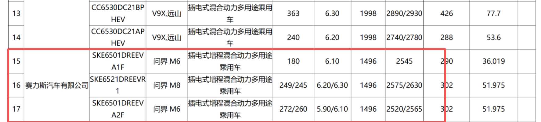 -问界M6 EV97.644 kWh 版本,整备质量 2395/2460/2515/2565kg,纯电续航 760/715/705/665km