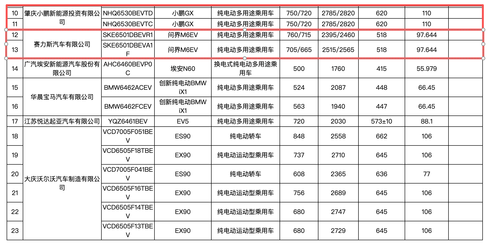 -小鹏GX91.9 kWh 版本,整备质量 2690/2750kg,纯电续航 665/635km110 kWh 版本,整备质量 2785/2820kg,纯电续航 750/720km63.3 kWh 版本,整备质量 2840/2890kg,纯电续航 320km(增程)
