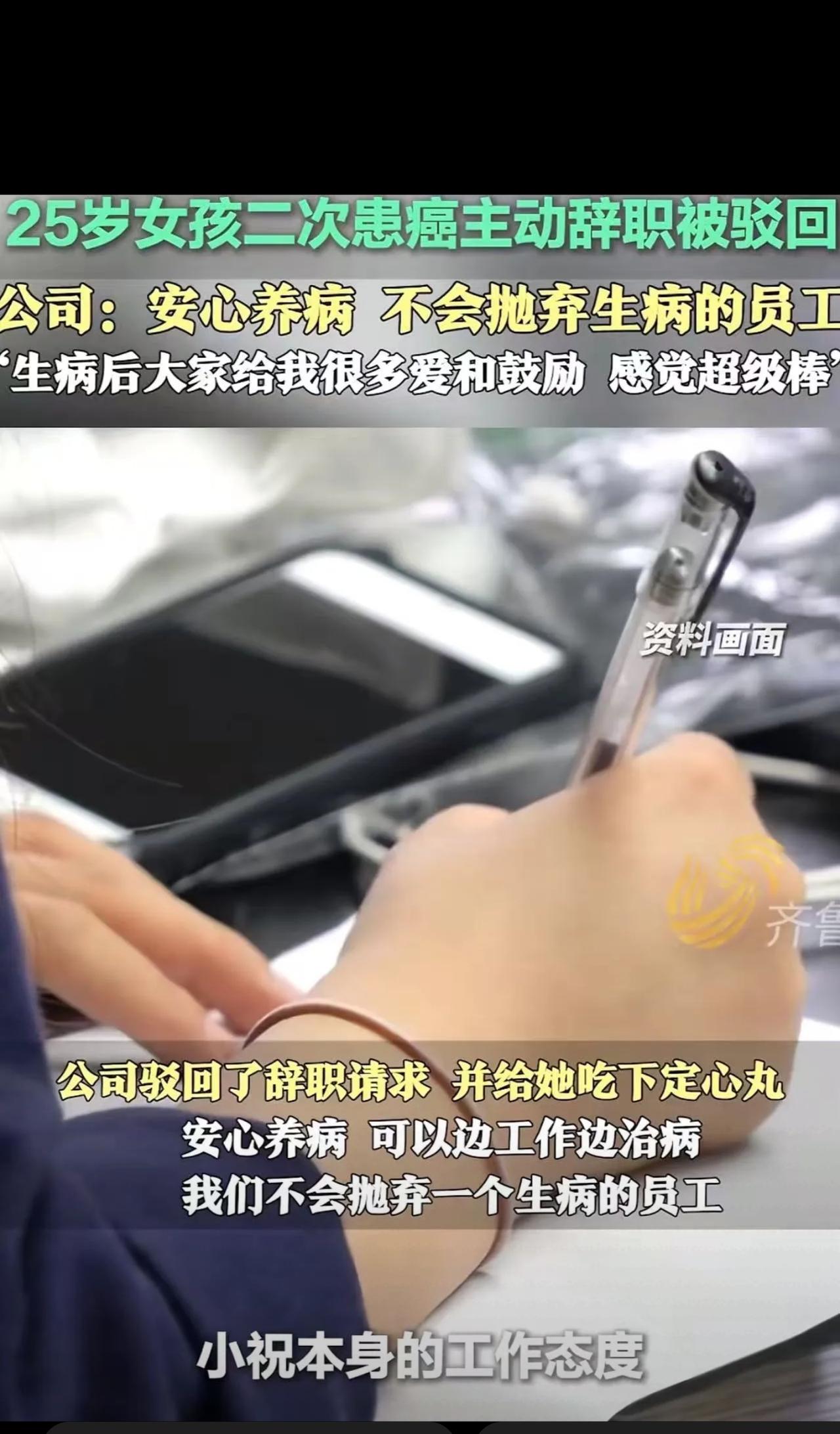 泪目!2024年,25岁女子被查出直肠癌晚期,她来不及心疼自己,反而担心自己请假影响工作,主动辞职。不料,领导不仅一口拒绝,还发动公司捐款给女子送上10万!领导:“安心看病,没钱公司给你想办法!”网友:神仙公司!这绝对是良心企业!” 25岁的祝乙琪,本该是肆意追梦的年纪,却被命运磋磨了半辈子。 5岁切掉右肾,每月往返医院复查; 11岁父亲离世,小小年纪就扛起家,打零工赚学费、凑药费,硬生生熬到大学毕业。 本以为终于能让妈妈和弟弟过上好日子,2024年却查出直肠癌晚期,癌细胞已经全身转移,晴天霹雳直接砸垮了这个苦命姑娘。 可她太懂事了,懂事到让人心疼。 得知要长期住院化疗,没法正常上班,她第一反应不是求帮助,而是怕占着岗位、耽误工作,主动写了辞职信,不想拖累公司半分。 她以为自己会被轻易放弃,毕竟太多公司遇到员工重病,只会逼退、甩锅、急着撇清关系。 可她的领导,直接做了让全网泪目的举动! 看完诊断书,当场把辞职信推回去,一字一句坚定说:辞职不批!你是公司的家人,不是耗材,家人有病,我们一起扛! 转头就发动全公司捐款,同事们纷纷解囊,短短几天凑齐10万救命钱,直接塞到她手里。 怕她跑医院辛苦,特意调去离医院最近的工位;怕她劳累,把繁重工作换成轻松文职;每月只让上20天班,剩下10天专心治病,工资一分不少! “安心看病,钱的事公司来想办法,你只管好好治病”,简单一句话,比多少画饼都暖心! 新闻爆了之后,评论区直接炸锅,无数打工人共情到落泪,也说出了自己的心酸遭遇: ✅ “我去年查出口腔癌,刚跟领导说要请假治疗,转头就被HR约谈劝辞,补偿都不肯给,看到这新闻真的酸了,同样是打工人,差距天差地别” ✅ “太真实了!我们公司员工发烧请假都要被骂,怀孕女员工都能被逼走,反观这家公司,老板的格局真的甩同行十条街” ✅ “我爸重病请假照顾,回去就被降薪调岗,逼得我主动离职,打工人在资本面前真的太卑微了,也就这家公司把员工当人看” ✅ “看哭了!员工懂事,老板暖心,这才是双向奔赴!把员工当家人的企业,注定能走得长远,祝老板生意兴隆” 我真的憋了一肚子话想说: 现在太多公司张口闭口狼性文化,实则把员工当一次性耗材,只谈奉献不谈保障,员工生个病、遇点难,恨不得立马切割,连最基本的人情味都没有,还总抱怨年轻人留不住、不忠诚。 可忠诚度从来不是管出来的,是暖出来的! 企业对员工多一份包容,员工就会多十倍付出;在员工绝境时伸手兜底,远比画一万个饼都有用。 法律只是企业的底线,而人情味,才是企业最硬的底气。 祝乙琪半生尝尽苦难,还好遇到了这样的暖心公司,在她最黑暗的时刻,给了她活下去的希望和尊严。 真心祝愿这个姑娘能战胜病魔,早日康复! 也愿所有打工人,都能避开冷血公司,遇到这样有温度、有良心的企业,被职场温柔以待❤️