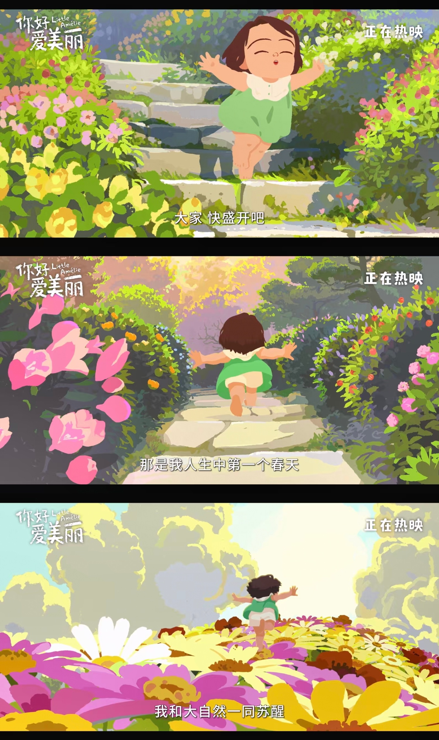 你好爱美丽今日上映《你好,爱美丽》好童趣、治愈、温暖的电影!缤纷色彩下以二三岁小孩的视角去感受人类的情感、死亡和失去,大自然的四季与鸟语花香。这些在大人世界非常常见的东西,但是却显得很复杂,而小孩视角把这些复杂的东西看得又非常简单。这部片子也是对自我童年的一种具象投射,小时候的自己也时常幻想着“我就是上帝”,可以操控自然万物,世界都在围绕着我旋转等等,当这些片段一一在影片中呈现出来时,爱美丽的童趣视角显得更加真实,因为我们也曾是这样过的,《你好,爱美丽》也像一个镜子,照出了我们遗忘的“童话世界”,我们也尝尝告诫自己要守住童心,可现实生活的烦恼哪还有留住它的空间,但这79分钟的电影真的是一部守住我们童心的礼物!爱美丽治愈了我的精神内耗春节档马上有戏