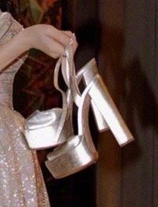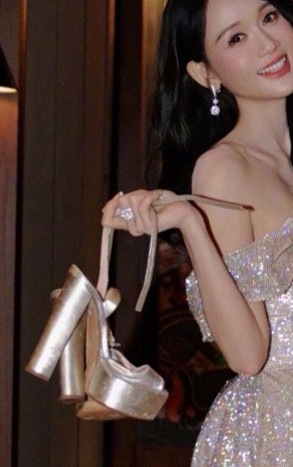 陈乔恩 陈乔恩 陈乔恩手提超高银色鱼嘴绑带高跟