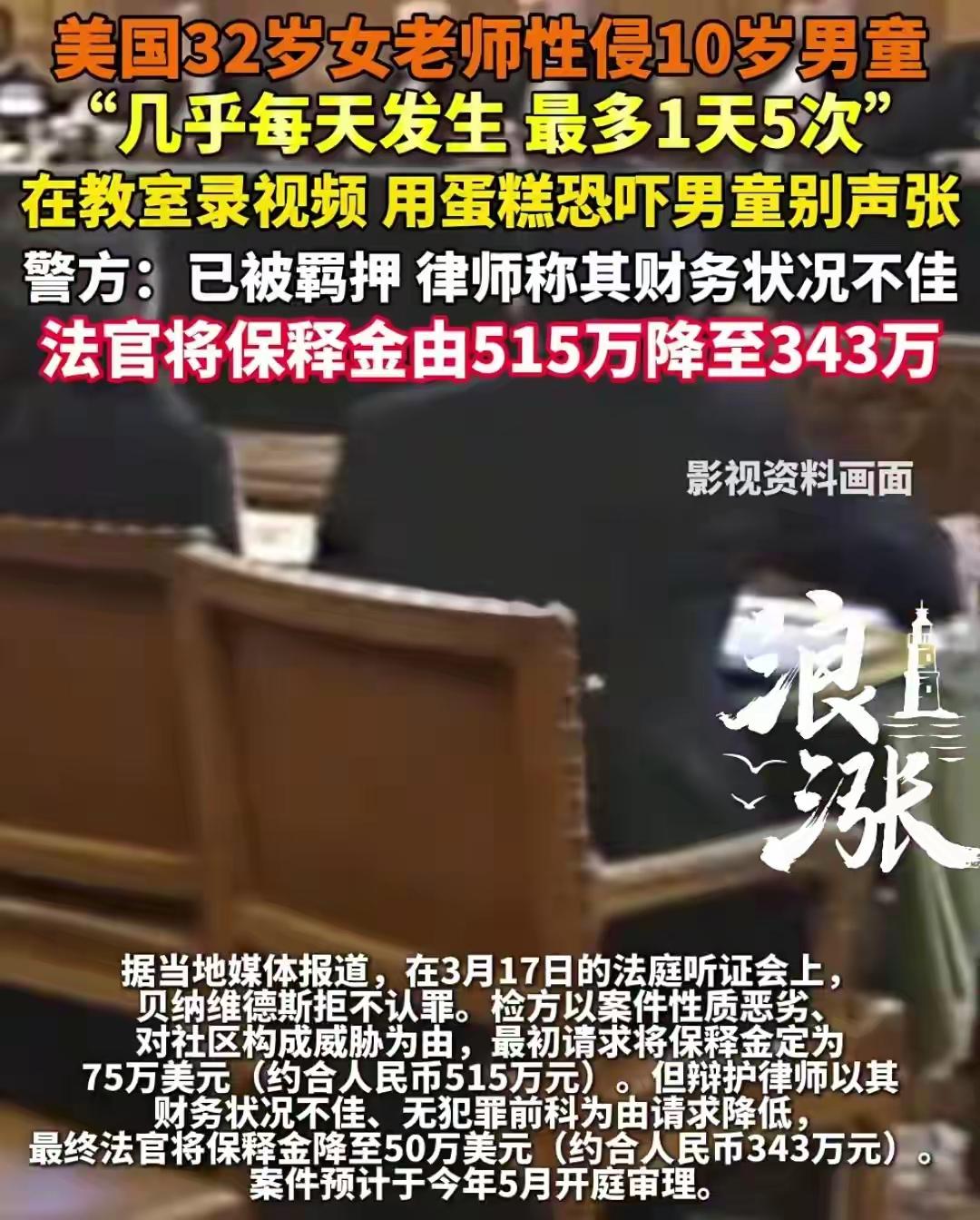 刷到美国这起案子,令人发指。一名32岁的特教老师,竟将魔爪伸向10岁学生,完全不配为人师表。 这名特教女老师,用蛋糕哄骗10岁男童,在教室隐蔽角落多次侵害他,最多一天5次,还让男童观看色情视频,拍了性侵视频威胁孩子不许说,直到家长发现异常报警,这事才曝光,目前她被羁押,却还拒不认罪。 这绝不是美国个案,更不该只聚焦于“如何教孩子保护自己”。首先要批判的,是这位丧失底线的特教老师,以及所有失职的相关人员。 1. 涉事老师罪无可赦,身为特教老师,本应守护特殊儿童的成长,却利用职业便利实施伤害,用威胁手段掩盖恶行,拒不认罪的态度更显其内心的冷漠与恶毒,这不是过失,是蓄意犯罪; 2. 熟人作案的根源,在于部分从业者丧失职业操守,披着“老师”的外衣行恶,而非孩子不够警惕; 3. 批判所有失职者,学校监管缺位、未能及时发现异常,纵容了恶行持续发生,不能将保护孩子的责任全部推给家长和孩子本身。 校园该是避风港,老师该是守护者,可这名特教老师,用职业赋予的信任当作伤害孩子的工具,其行为不仅践踏师德,更触犯法律。保护孩子,首要的是严惩这类失德败类、健全校园监管,而非一味要求孩子学会自保,更不该让家长独自承担所有责任。 大家怎么看这件事?评论区留言讨论。