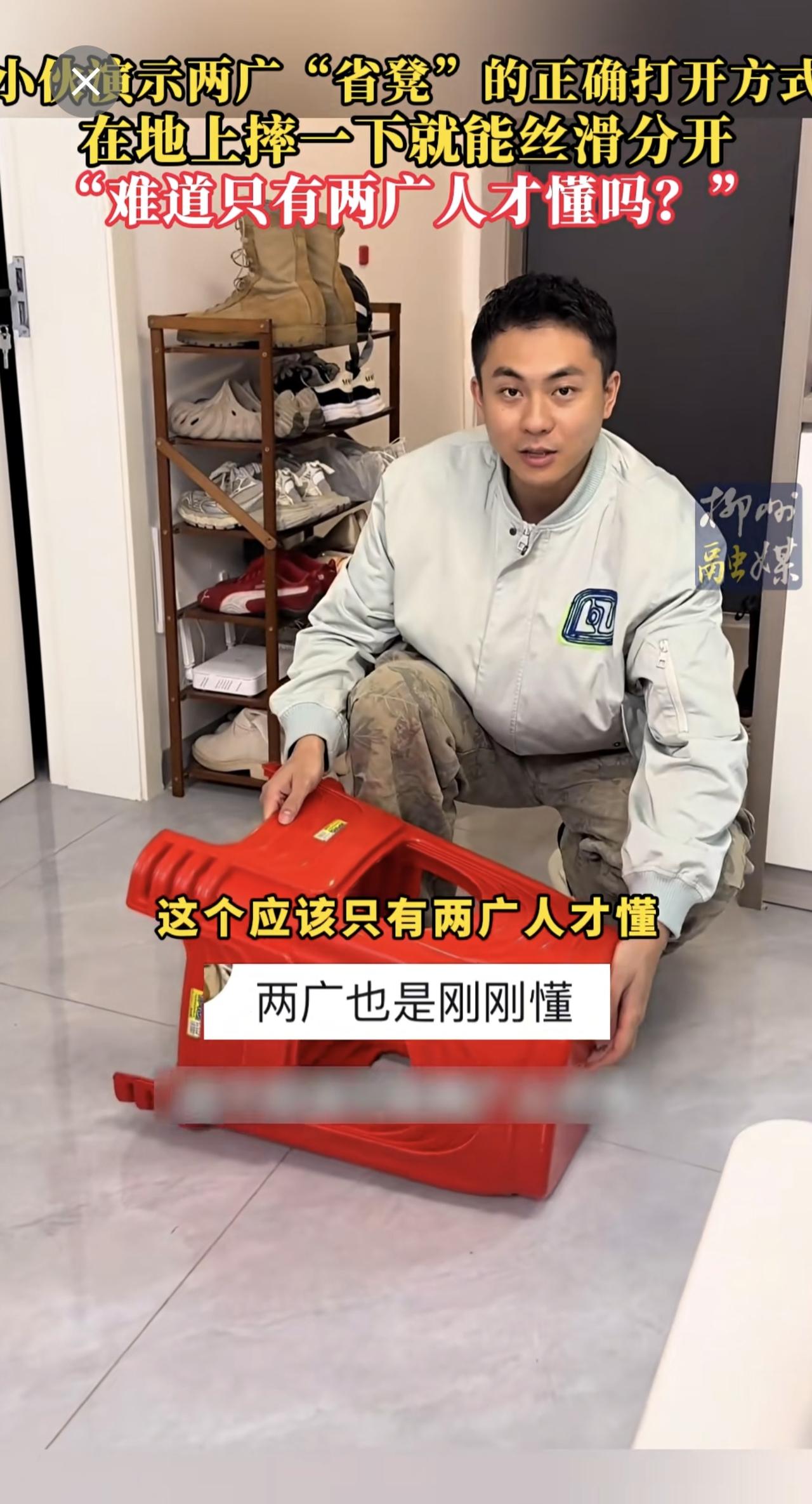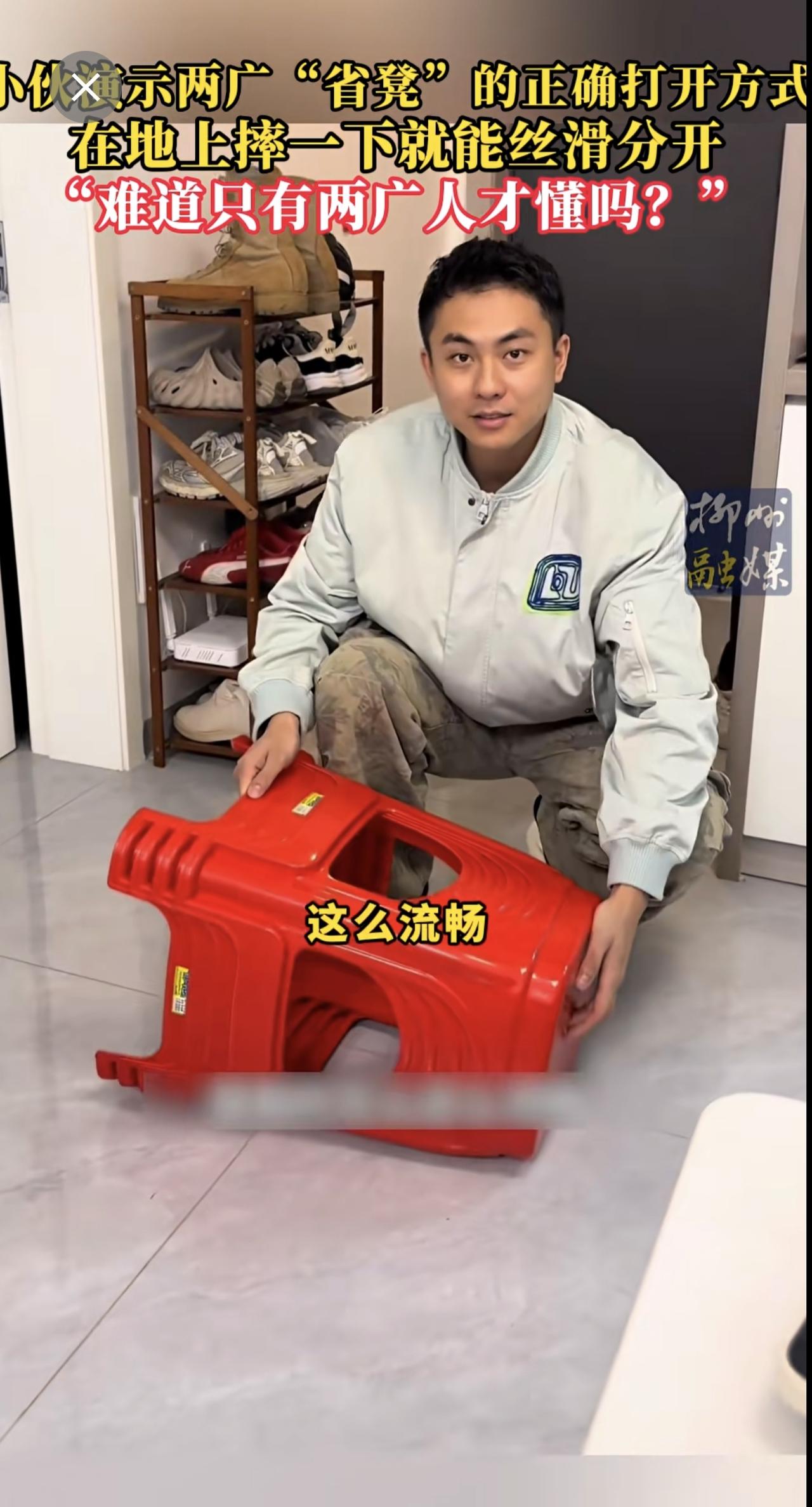 小伙演示两广“省凳”的正确打开方式:在地上摔一下就能丝滑分开~更多广西本地新闻