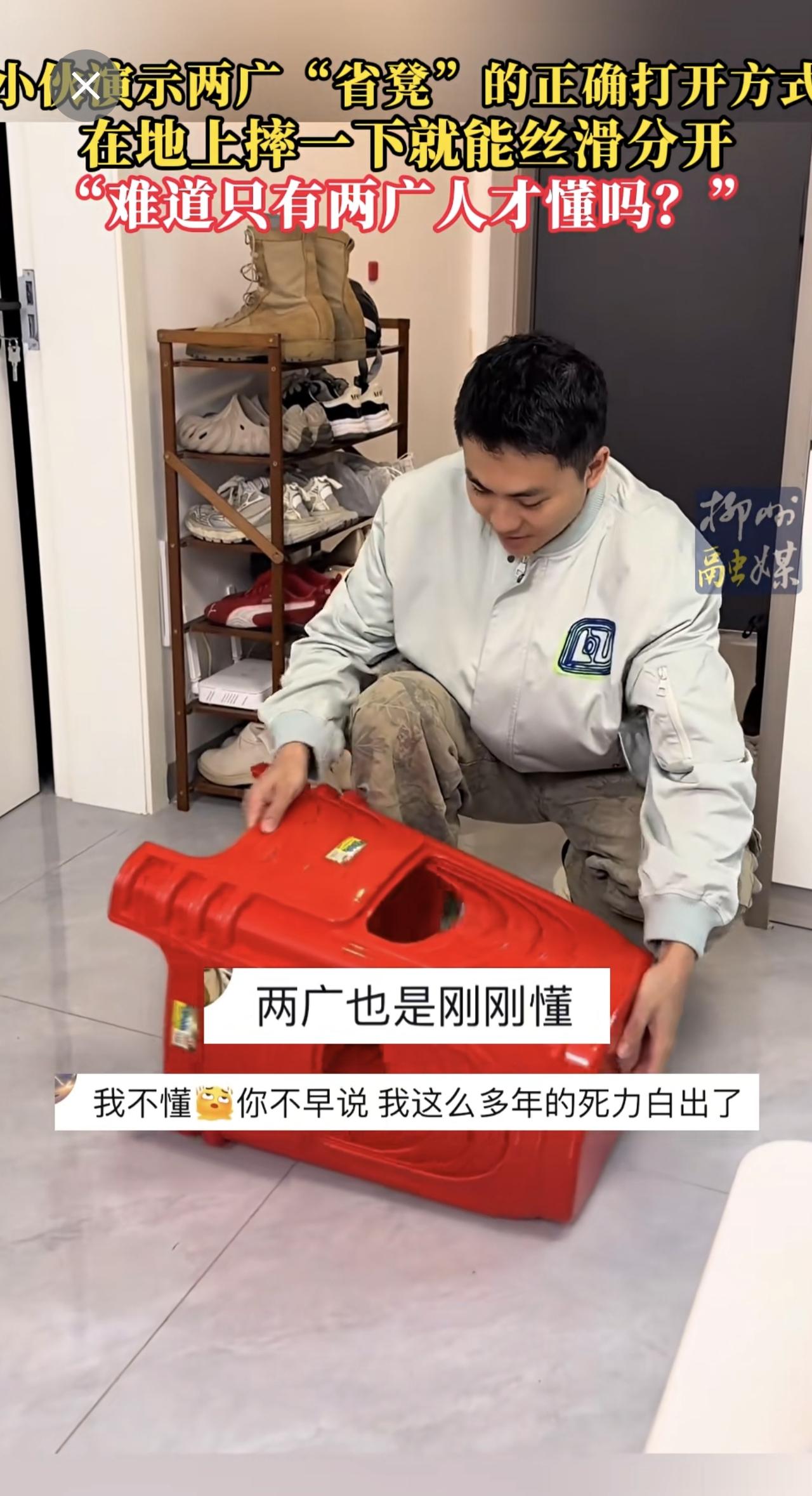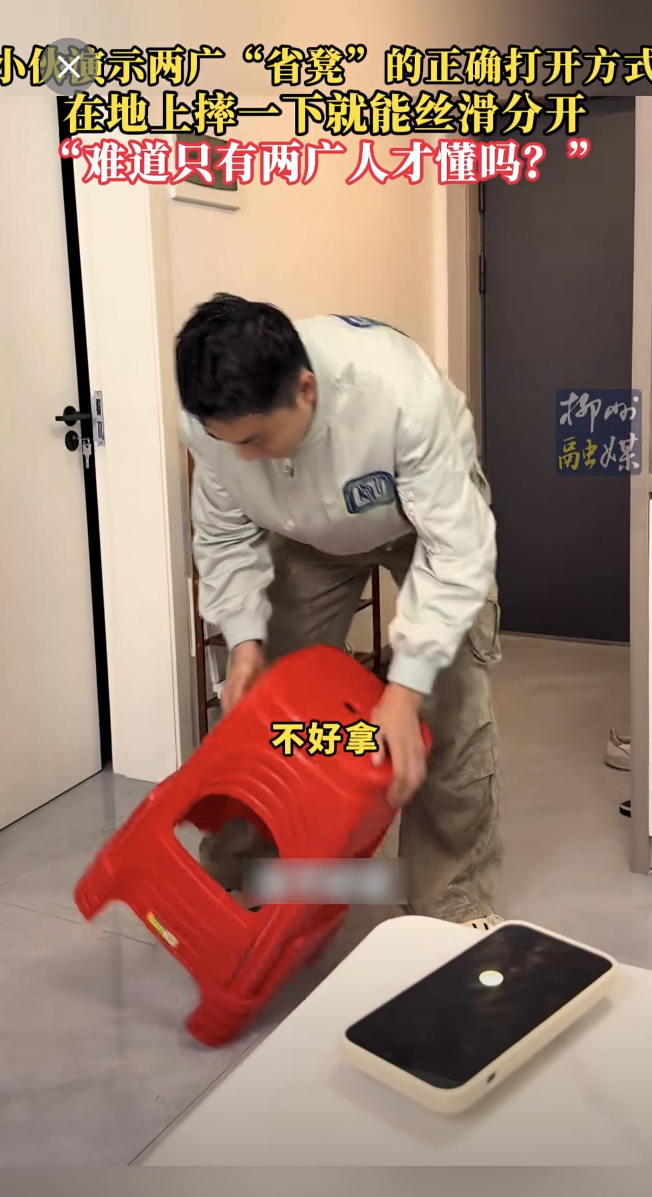 小伙演示两广“省凳”的正确打开方式:在地上摔一下就能丝滑分开~更多广西本地新闻 欢迎关注@柳州1号