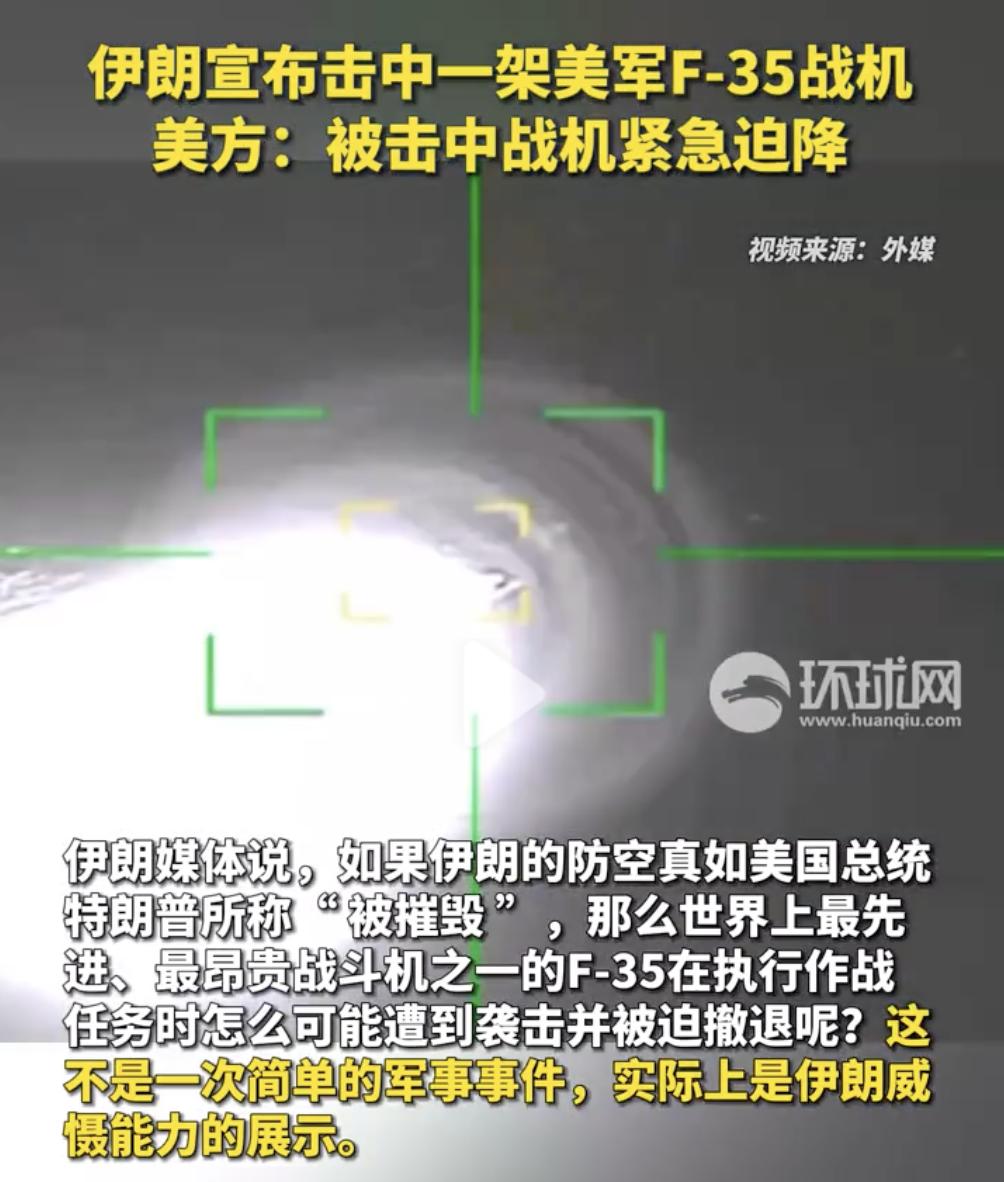 伊朗击中美军F-35战机,最尴尬的不是F-35被打中,也不是F-35迫降,而是战机被雷达锁定了那么长时间竟然毫无反应,真是丢人丢到家了。 视频中F-35至少被伊朗雷达锁定好几秒钟,但是直到导弹发射出去,击中飞机,F-35全程都没有任何反应,难道是没发现自己被锁定吗?这可是货真价实的五代机,老美最先进的隐身战机,被伊朗这一枚导弹打的底裤都没了。 萨德、铺路爪、死神、F22先后被干掉,这次又是F35,这么多最先进的战机和装备都被干掉了,老美这脸面被踩的稀碎了,以后这些武器估计不好卖了。 还有一个比较好奇的是,伊朗方面说是用新型先进防空击中F-35的,这个“新型先进防空系统”到底是什么呢?是伊朗自己的,还是别人支援的呢? 不管是从哪来的,这套防空系统都已经一战成名了,给这套防空系统点赞,真牛!