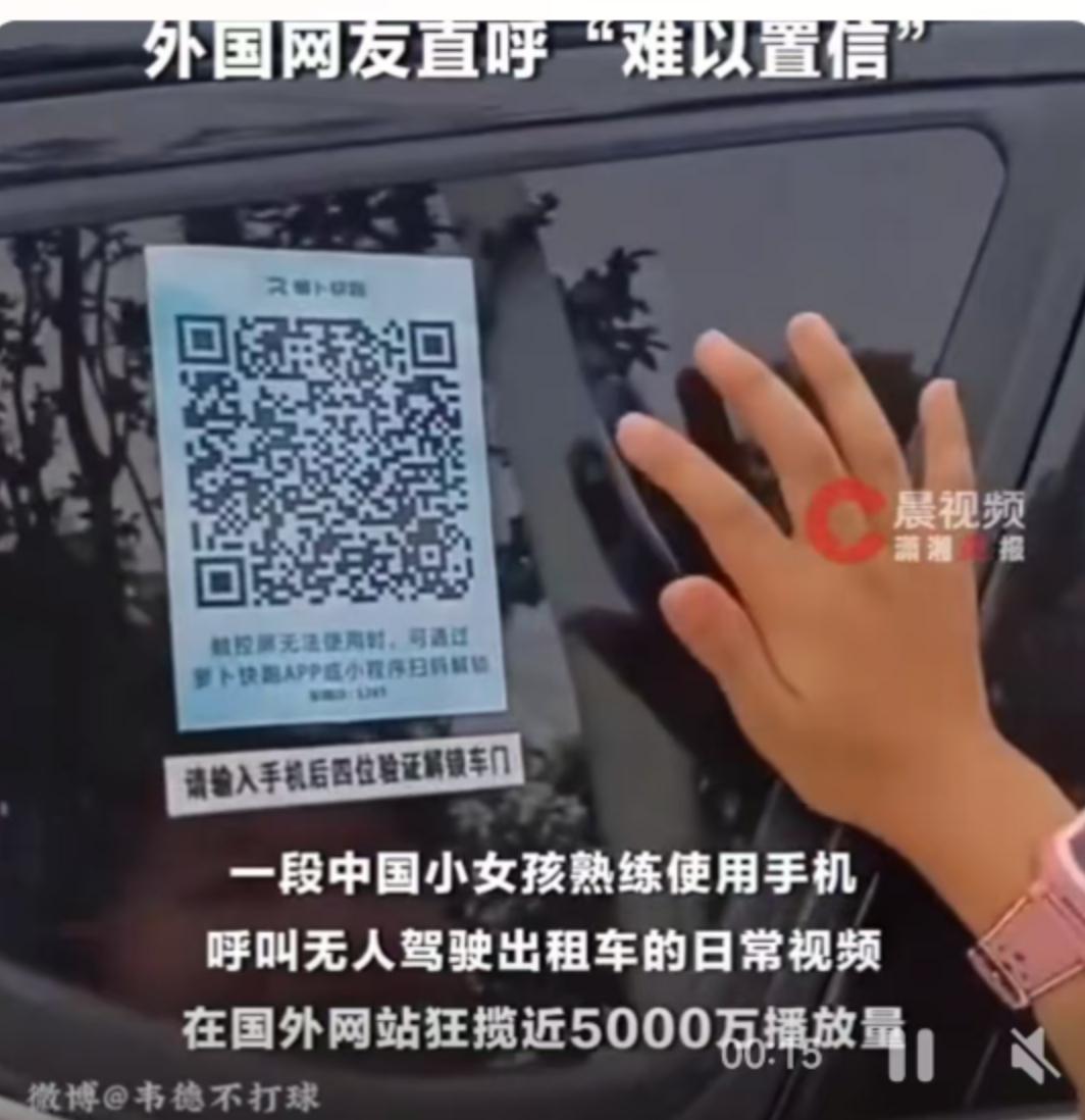 一段只有短短几十秒的视频,最近在海外社交平台推特上像是长了翅膀一样,播放量一路狂飙,突破了4900万次。视频的内容其实特别简单,没什么惊天动地的特效,也没有跌宕起伏的剧情,就是一个中国小女孩在武汉街头,熟练地呼叫了一辆无人驾驶出租车,然后淡定上车、落座、出发。 就是这么一个在中国人看来可能已经是“家常便饭”的画面,却在大洋彼岸引发了轩然大波,甚至让不少外国网友直呼“难以置信”,评论区里那叫一个精彩纷呈。 视频拍摄的时间是3月19日,地点就在武汉。作为国内首个开放无人驾驶网约车商业化运营的城市,武汉的街头已经跑满了这种充满未来感的“萝卜快跑”无人车。视频里,小女孩看着也就十岁左右,手里拿着手机,动作行云流水:下单、等待、车辆到达。车停稳后,她熟练地输入手机后四位数字验证,接着在车内的触控屏上操作解锁,整个过程一气呵成,旁边完全不需要大人指手画脚。 如果这视频发在国内平台,估计大家关注的焦点都在“这孩子真独立”或者“无人车又普及了”上。但到了国外网友眼里,画风突变,质疑声铺天盖地。 很多人的第一反应是“假”。在他们看来,一个孩子独立打出租车这件事本身就是天方夜谭,更别提还是无人驾驶的。评论区里充斥着“家长心太大”、“这不安全”、“肯定是摆拍”的声音。甚至有人上升到国家层面,觉得以中国的基础设施水平,根本不可能支持这种高科技服务日常落地。 这巨大的反应落差,其实折射出的是一种深层次的“认知错位”。 当我们的孩子已经把无人车当成了生活中的普通交通工具时,很多外国网友还在把它当成科幻电影里的概念车。这种“难以置信”,很大程度上源于他们对中国数字化生活普及程度的不了解。就像扫码支付、外卖快递的极速送达一样,这些在中国早已渗透进毛细血管的日常服务,在很多外国网友眼里,依然是那个遥不可及的“科幻场景”。 有在华生活的外国博主就曾感叹,这种便利体验在其母国尚未普及。这不是技术本身的有无,而是规模化应用和商业化落地的差距。武汉作为“自动驾驶第一城”,早已将这种前沿技术变成了市民触手可及的出行方式。从商业化运营牌照的发放,到APP扫码验证机制的成熟,每一个环节的顺畅运行,都是建立在庞大且完善的城市智能网联基础设施之上的。 那些质疑“摆拍”的声音,恰恰忽略了这一点:真正的科幻,往往就隐藏在最琐碎的日常之中。小女孩的操作之所以如此熟练,不是因为她经过了特殊训练,而是因为这套系统设计得足够人性化、足够简单,且已经在当地普及开来。 当然,对于“小孩独自打车安全吗”这个争议点,我们确实要客观看待。不同国家的交通法规、社会治安环境以及对儿童独立性的培养观念都有很大差异。在某些国家,家长可能确实不敢让小孩独自出门,这无可厚非。但视频反映出的核心问题,其实不在于家长胆子大不大,而在于这种新型出行方式是否已经足够安全、稳定,以至于能让人产生信任感。 这就好比当年我们看外国人惊叹于手机支付一样,如今轮到他们惊叹我们的无人驾驶了。4900万的播放量,不仅仅是猎奇心理的作祟,更是一次中国科技落地实力的“被动输出”。 技术不是为了炫技,而是为了服务于人。当一个孩子都能毫无障碍地使用无人驾驶汽车时,这本身就说明了这项技术的成熟度。那些看似“不可思议”的质疑,终将在技术不断普及的现实面前烟消云散。这视频火得突然,但也火得真实,它让世界看到了一个正在发生的、充满未来感的中国日常。 以上内容仅供参考和借鉴