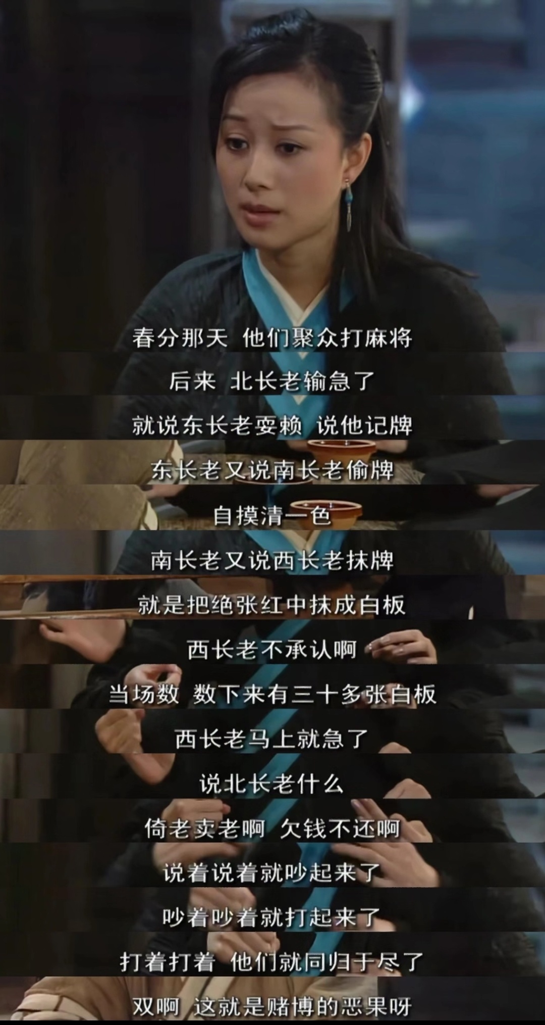 【春分是葵花派解散的纪念日】今天是春分,你还记得吗?今天也是《武林外传》里葵花派四大长老“团灭”的日子 当时,祝无双投奔白展堂时告诉他四大长老无了,葵花派也散了,只因他们在春分那天聚众打麻将——北长老输急了就说东长老耍赖,东长老说南长老偷牌,南长老说西长老抹牌,西长老说北长老欠钱不还,打着打着,就同归于尽了…展堂:“双儿啊,这就是赌博的恶果呀!”