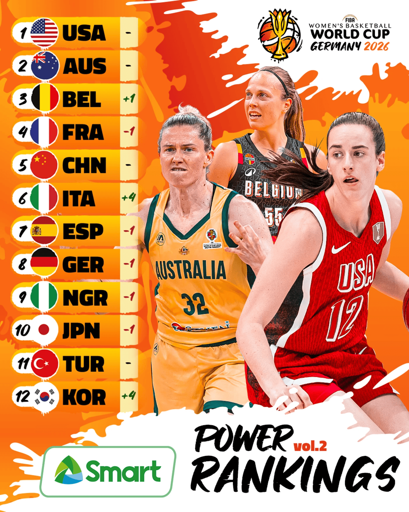 FIBA更新女篮世界杯实力榜:美国居首,中国女篮位列第五
