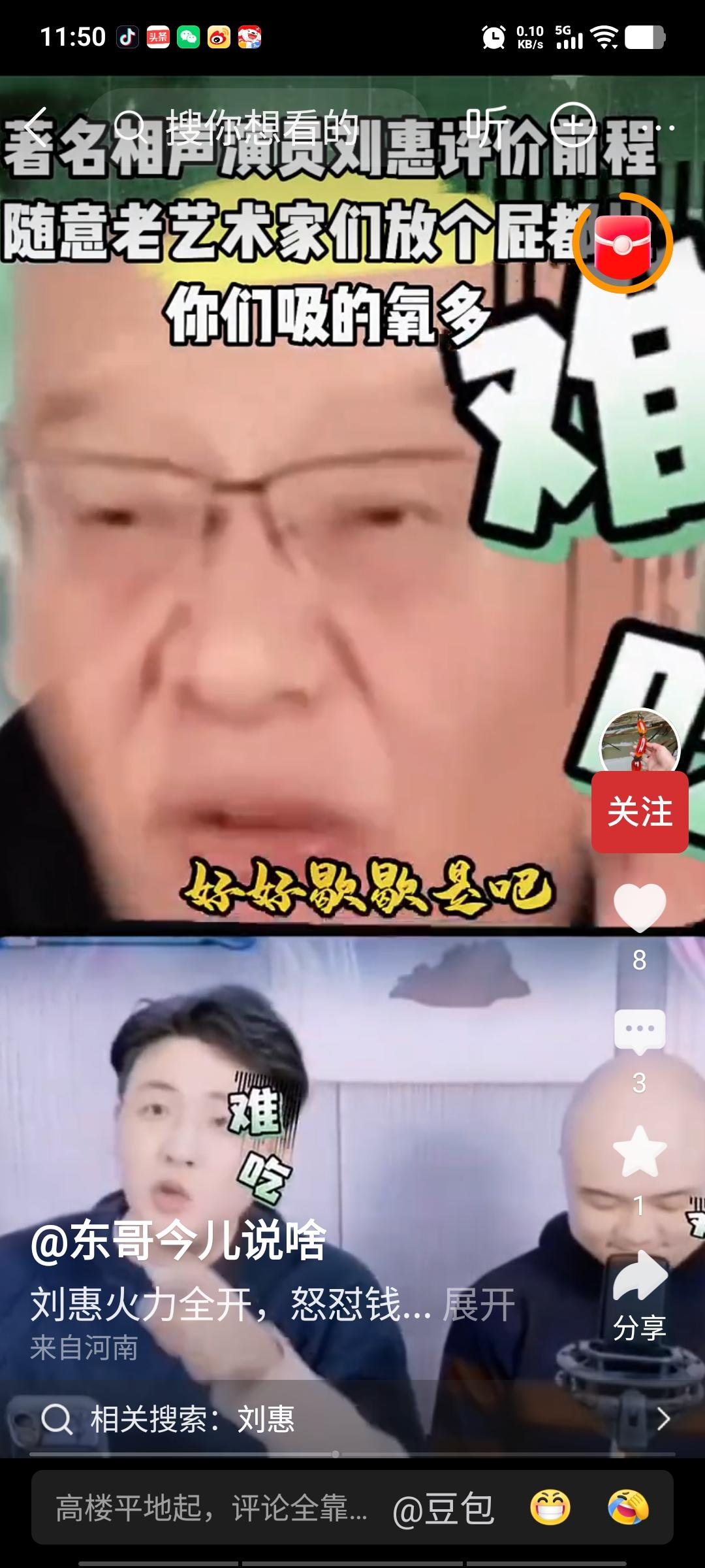 针对天津钱隋毫无根据的胡言乱语,北京老炮刘惠怒怼这俩毛头小子。他言辞尖锐地说道,你们谁都敢评头论足,谁都敢肆意谩骂。就说郭德纲、侯耀华、杨议几位老师,人家走过的桥比你们走的路都多,人家吃过的盐比你们吃的面都多。就这几位大师放的屁,都比你们吸的氧、呼吸的空气多。告诉他们,歇一歇吧,好好歇着!就我们这些没落的老炮儿,放个屁都比你们吸的氧多。我听你们骂人,觉得特别荒唐。你们吃饭了吗?挣钱了吗?能养家糊口吗?你媳妇儿乐意你这样吗?你们成天叽叽喳喳,怎么生存下去啊?粉丝见面会还让人家出钱,不觉得寒碜吗?你们应该努力挣钱养家,把媳妇哄开心,把老妈照顾好,和社会上的人和谐相处。要知道,每个人都是老师,都是高人,在夹缝中求生存,这才是你们的唯一出路。 看来刘惠是实在看不下去了,虽说话有点难听,但理却不糙。这俩小子确实该有人站出来管管。他们年纪轻轻,没大没小,逮谁咬谁,就为了哗众取宠,博取粉丝流量。不在相声园子里下功夫,天天在直播间里指点江山,是可忍,孰不可忍。期待有更多的人站出来,为弘扬相声艺术发声,让曲艺赛道风清气正。