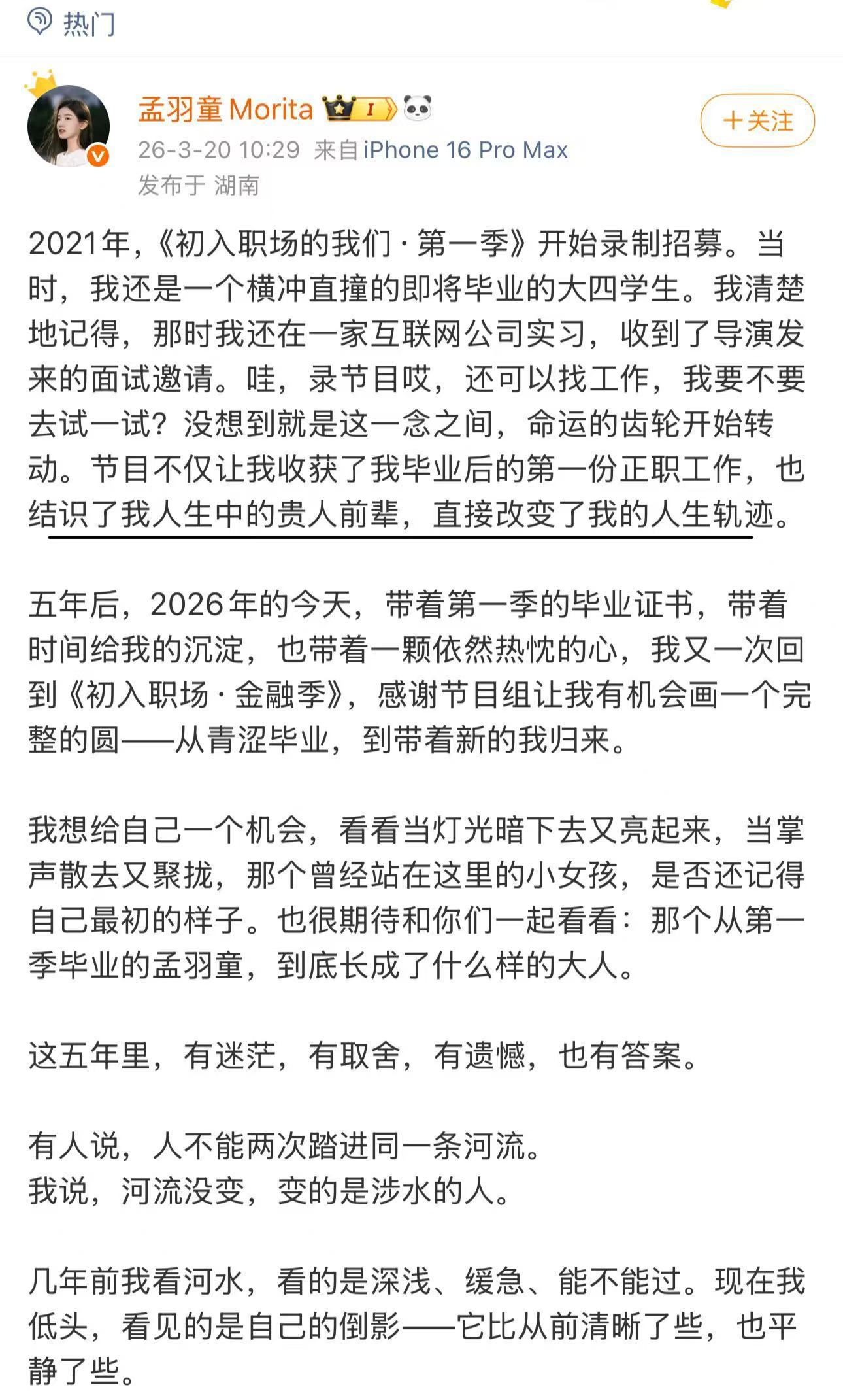 孟羽童发文说董明珠是贵人孟羽童发文说初入职场改变了人生 五年前因节目踏入职场,五