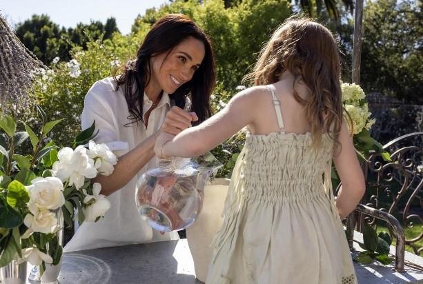 梅根终于还是憋不住了,4岁女儿莉莉贝特,在小花园里穿着吊带裙,露着白嫩小胳膊小腿,看似是在玩耍,在给妈妈帮忙,一副宣传图却显现出梅根的本意。 梅根做事总有铺垫,前几天发莉莉贝特喂鸡小短片时,她就在后院插花。 背景音里的哈里还不住夸赞“太美了”,“粉色衬托得十分好看”。 这不才隔了两天,她就又把莉莉贝特推出来了。 这是她生活品牌 As Ever 的宣传幕后视频,视频下方配文:“妈妈的小帮手✨ 于家中为 @aseverofficial 拍摄的幕后花絮”。 看似是莉莉贝特像个小精灵一样意外闯进镜头,实则不还是特意出镜为她宣~传~带~货。 莉莉贝特穿着一件亚麻色的吊带布裙,白皙的肤色和梅根形成鲜明对比;一头金发散落肩头,从背影看不出一点非裔血统,随了哈里,温莎基因不愧是国王基因,如此强大呢。 宣传图里有一张大手托小手,小手托鲜花的照片,那就是莉莉贝特的小手吧。 公爵夫人出品,价格自然不低,梅根合作的花束品牌售价最低也要200美元,还得搭着她的产品卖,不知那些名媛会为她买单。 和网飞分道扬镳后的梅根,突然没了底气,频繁抛头露面参加商业活动开启事业第二春。 这样的梅根,就像打不死的小强,拼搏精神倒是真值得夸赞,可沉默的哈里,懵懂的儿女,她就真忍心让他们做陪衬吗。