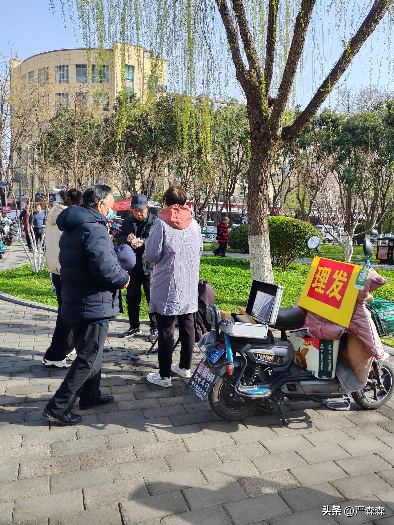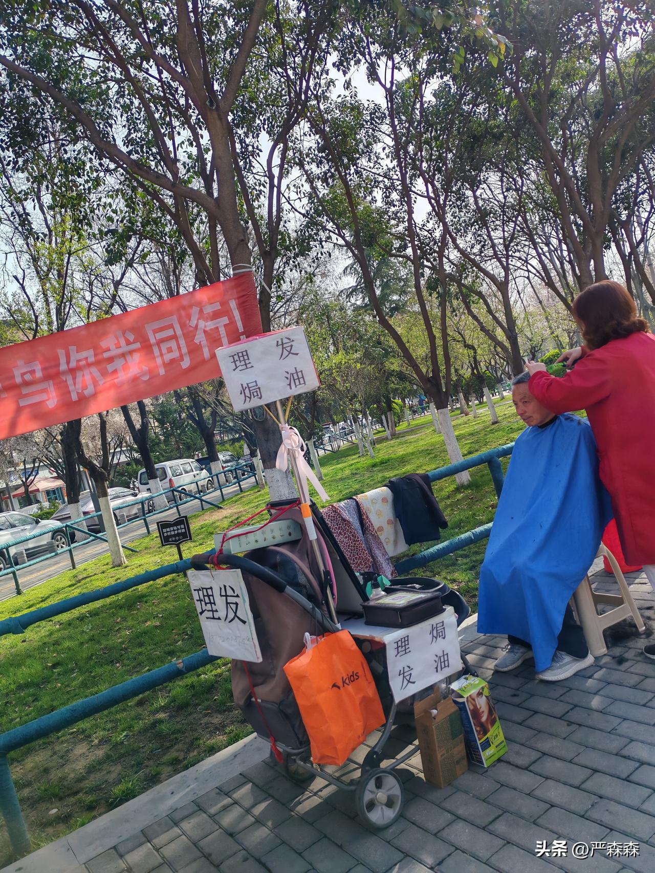 今日理发价大飙升 2月20日,坐标西安。今天是农历2月2日,民俗讲究理发会带来福气,刚才我路过公园时,果然见到了很多理发摊。 托尼老师们都出来了,扎堆在公园一角,摆起了理发摊,大显身手,今日理发的人明显的多了很多。 我看了一下,前来理发的主要还是老年人为主,大概是因为今天是工作日,中青年在上班,小孩子在上学吧。 不过我也发现有意思的是,趁着这个吉日,托尼老师们理发纷纷涨价了。 以前公园角落路边摊理发清一色的5元,个别摊收费8元,可今天情况不一样了 好几个摊变成了10元一位,甚至有个别摊变成了15元,图一这一家收费15元。 不过这也是符合市场规律的,需求多了价格自然就涨了。朋友们,不知今天你们那里理发涨价了吗?