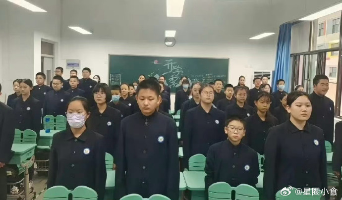 男女不同款还混站就很乱,全黑本来就严肃,还加了白色校徽,猛一看像灵堂[捂脸哭]