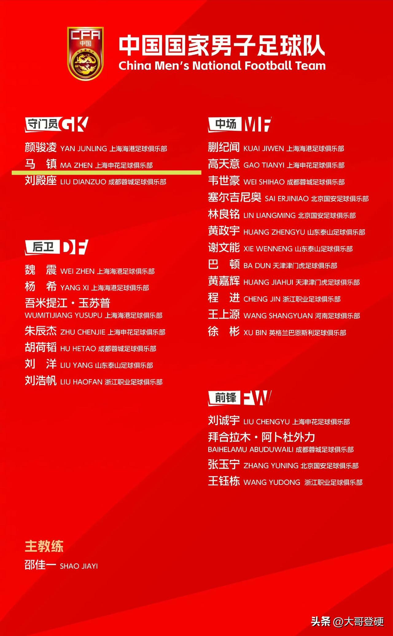 马镇入选国足?!国足新一期大名单里,唯一有争议的,恐怕就是来自上海申花的门将马镇[吃瓜群众] 北京时间3月20日,中国足协公布了新一期国足大名单,其中上海申花队的门将位列其中,引起了大多数球迷的争议[惊呆] 众所周知,新赛季中超前两场比赛,上海申花队的首发门将是薛庆浩,而马镇连一分钟出场时间都没有获得[泪奔] 如果连中超联赛出场都没有,就能够入选国足集训大名单,那是不是意味着其他中超各队的替补门将,都有资格入选国足大名单了,毕竟大家都没有出场,也没法拿数据去衡量界定[思考] 不得不说,马镇能够入选新一期国足大名单,可能唯一合理解释就是,上海申花与马镇的合同今年年底到期,对于马镇而言今年是合同年,或许确实需要这个国脚头衔来谈续约,毕竟国脚和非国脚的年薪,差了上百万[灵光一闪]