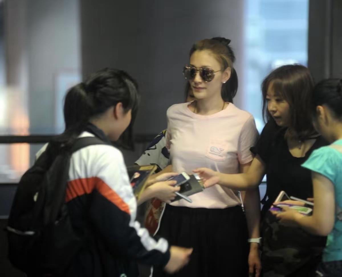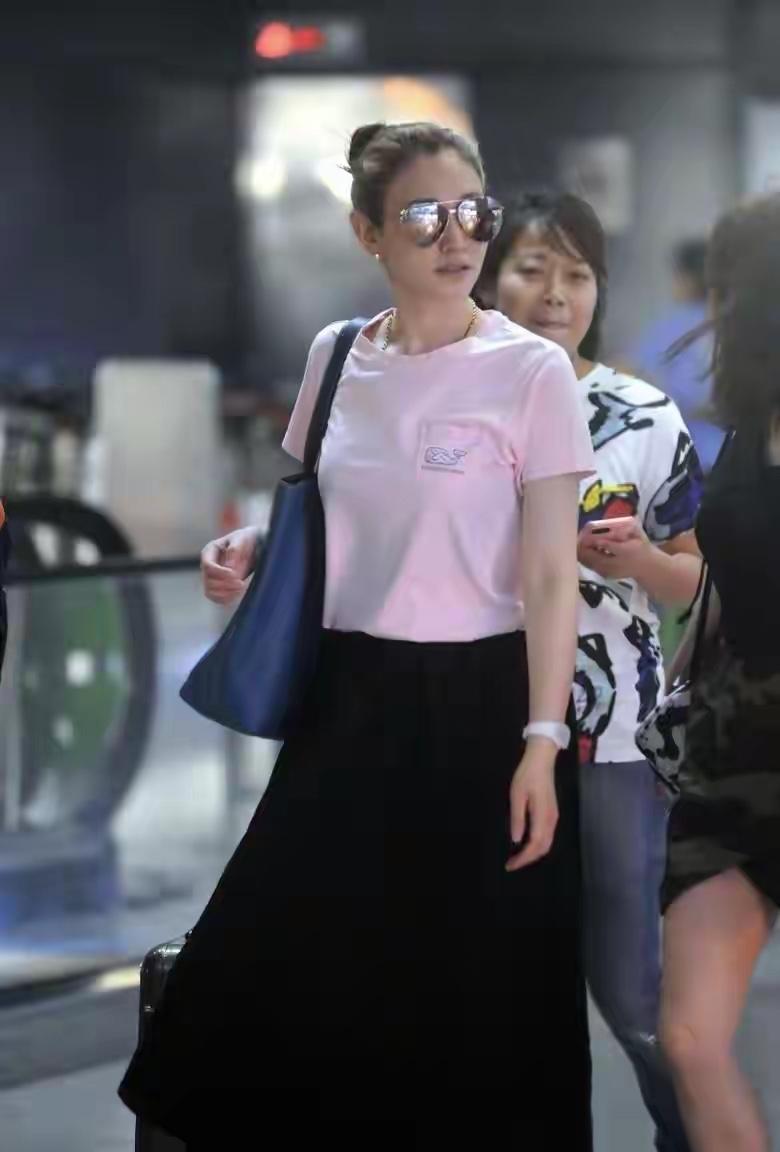 李小冉选了一件浅粉色短袖 T 恤,这种低饱和度的粉色一点都不挑人,反而衬得她皮肤白到发光,完全没有扮嫩的尴尬感。T 恤的版型也很讲究,不是那种紧身显肉的款式,而是微微宽松的直筒剪裁,刚好遮住腰腹的小赘肉,又不会显得拖沓,胸口还有个小小的刺绣图案,细节感拉满,让基础款瞬间有了辨识度,不会单调。
