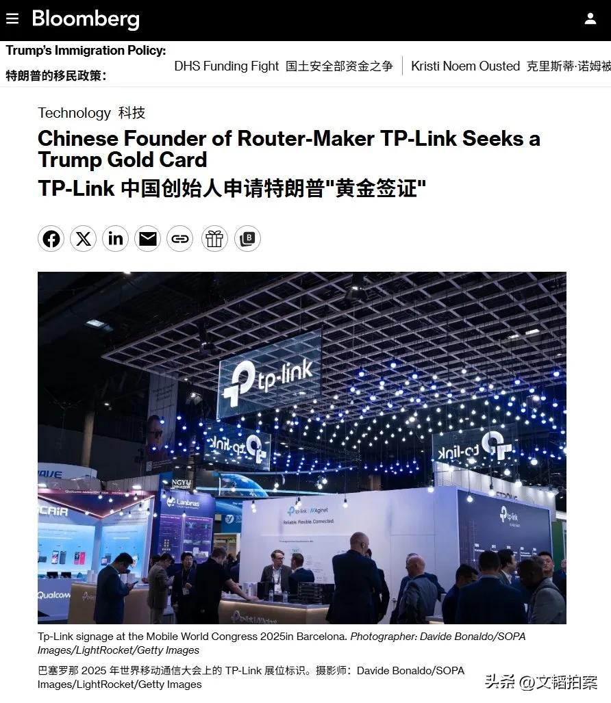 据外媒报道,路由器巨头TP-LINK创始人正在申请“特朗普金卡”,以求获得快速拘留许可。 TP-LINK早前已经被老美制裁,在美业务受限,如今依然是“明知山有虎偏向虎山行”,看来这家公司是准备在中美之间选边站队了。 最近几年,这样的公司不在少数,以为讨好美国,剥离自己的中企身份就能获得老美认可。实际上,所有诞生于华的企业,完全离开本土以后,基本都销声匿迹了。