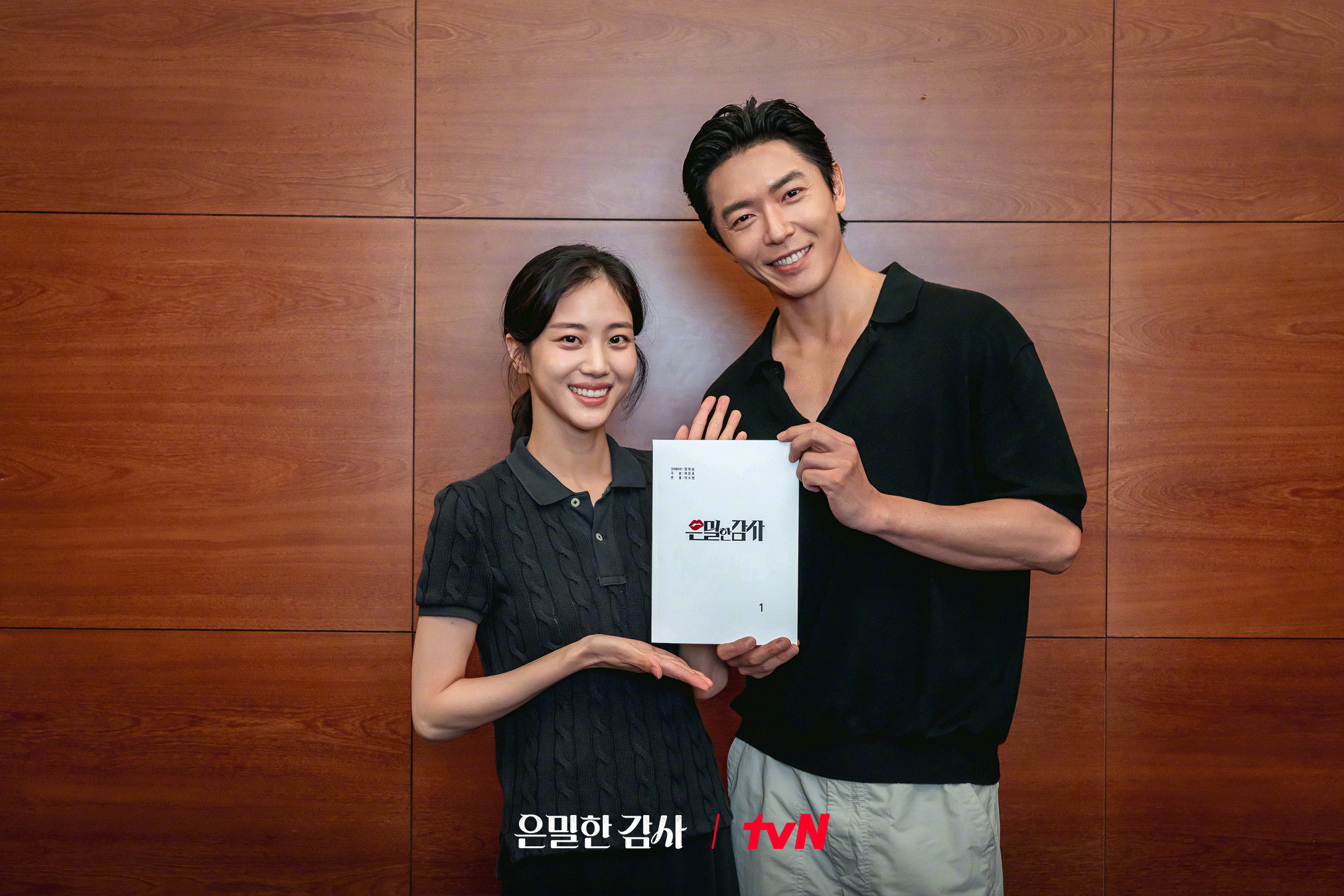 申惠善孔明金材昱洪华妍 主演tvN新周末剧隐秘的监察 公开剧本研读照。