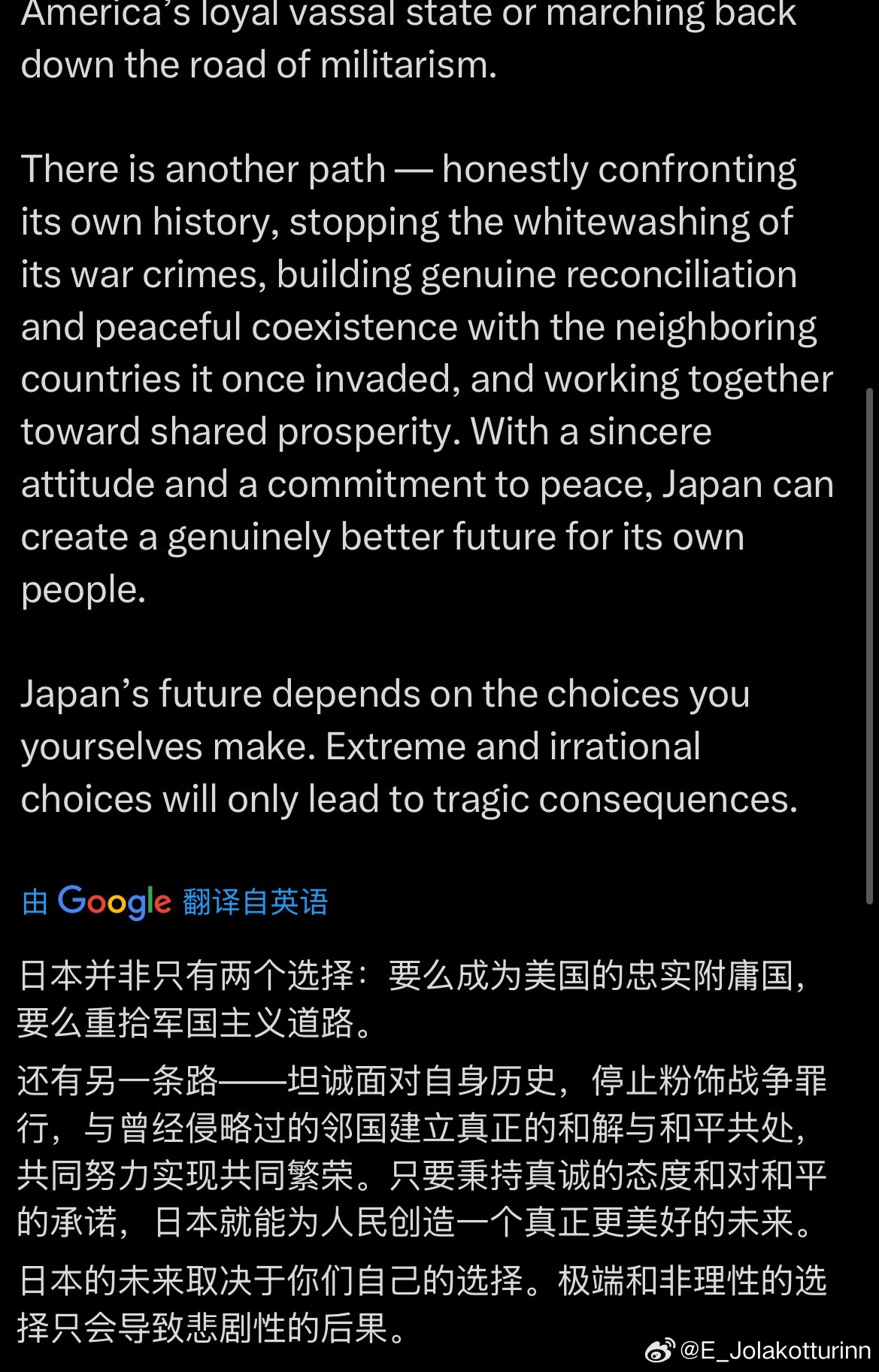 本以为是右翼日本人,回复完才发现是中国人,还是个动辄阴谋论入脑的家伙。
