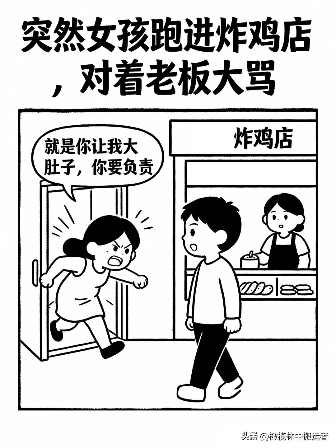 逗笑漫画:女生:你为什么搞大我肚子?我还是学生,你要负责。炸鸡店老板:我就一炸全鸡的,你天天五只起步还配五杯可乐。