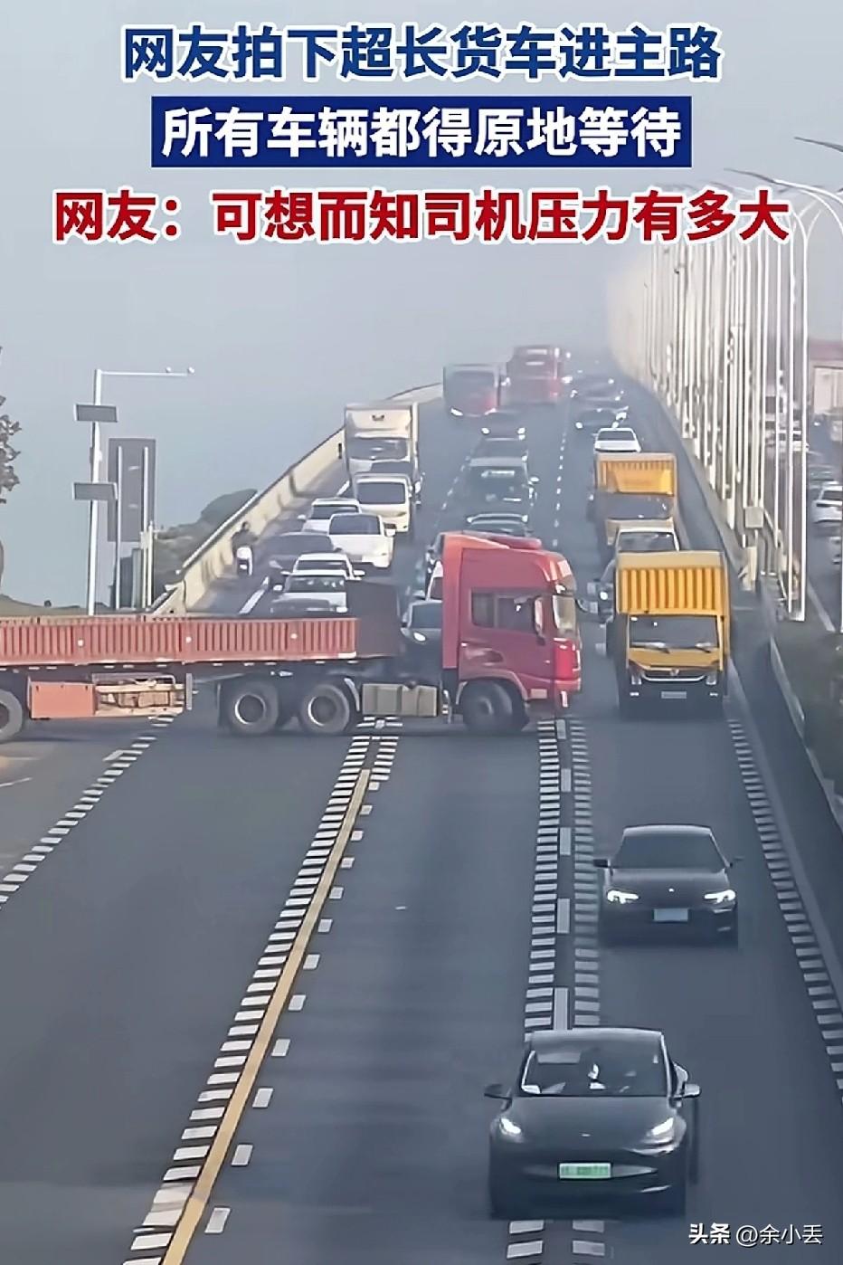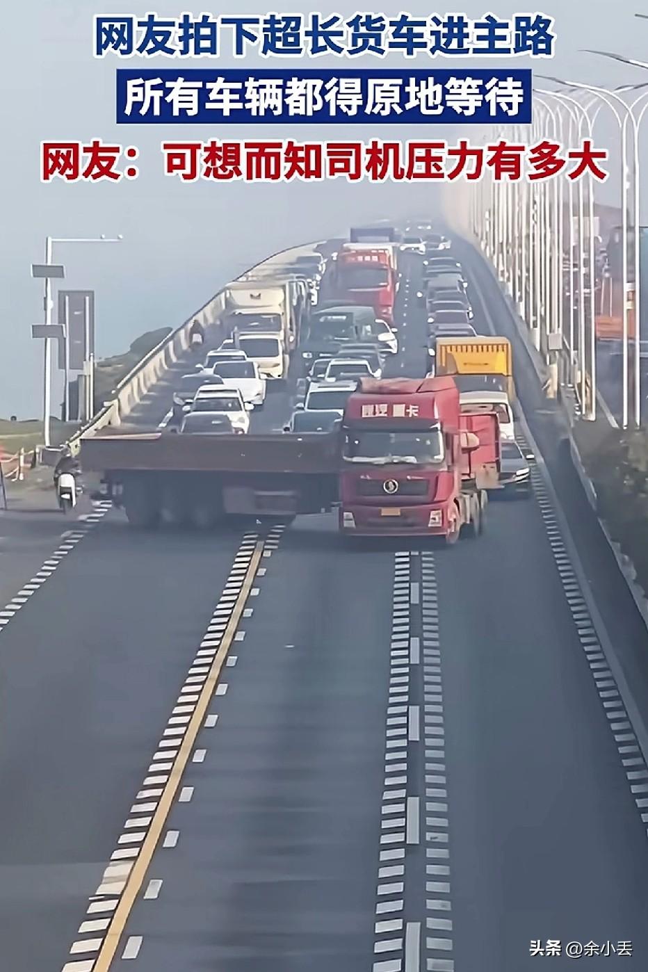 实拍超长货车上主路,整条路都为他让路,司机师傅的压力谁懂? 路上遇到这种超长货车,真的是既佩服又心疼。 视频里,一辆红色的大货车要并入主路,车身实在太长了,转弯半径特别大,根本没法像小车那样灵活操作。 后面排起了长长的车队,不管是私家车还是其他货车,全都自觉地停在原地,没有一个人按喇叭催促,也没有一个人抢道加塞。 大家都静静地等着,看着司机师傅一点点、小心翼翼地调整方向,生怕他操作失误。 说实话,开这种车的师傅,心里的压力肯定大到了极点。身后是几十上百辆车在等,脚下是容不得半点差错的方向盘,稍有不慎就可能出大事。 他们常年奔波在路上,风里来雨里去,拉着沉重的货物,只为了养家糊口。每一次出车,都是一场考验。 看着这一幕,真的觉得很暖心。路上的司机们都懂彼此的不容易,多一份理解,多一份等待,就是对他们最大的支持。 生活不易,愿每一位在路上奔波的司机师傅,都能平平安安,顺顺利利。 你在路上遇到过这种超长货车吗?当时是怎么做的?评论区聊聊。