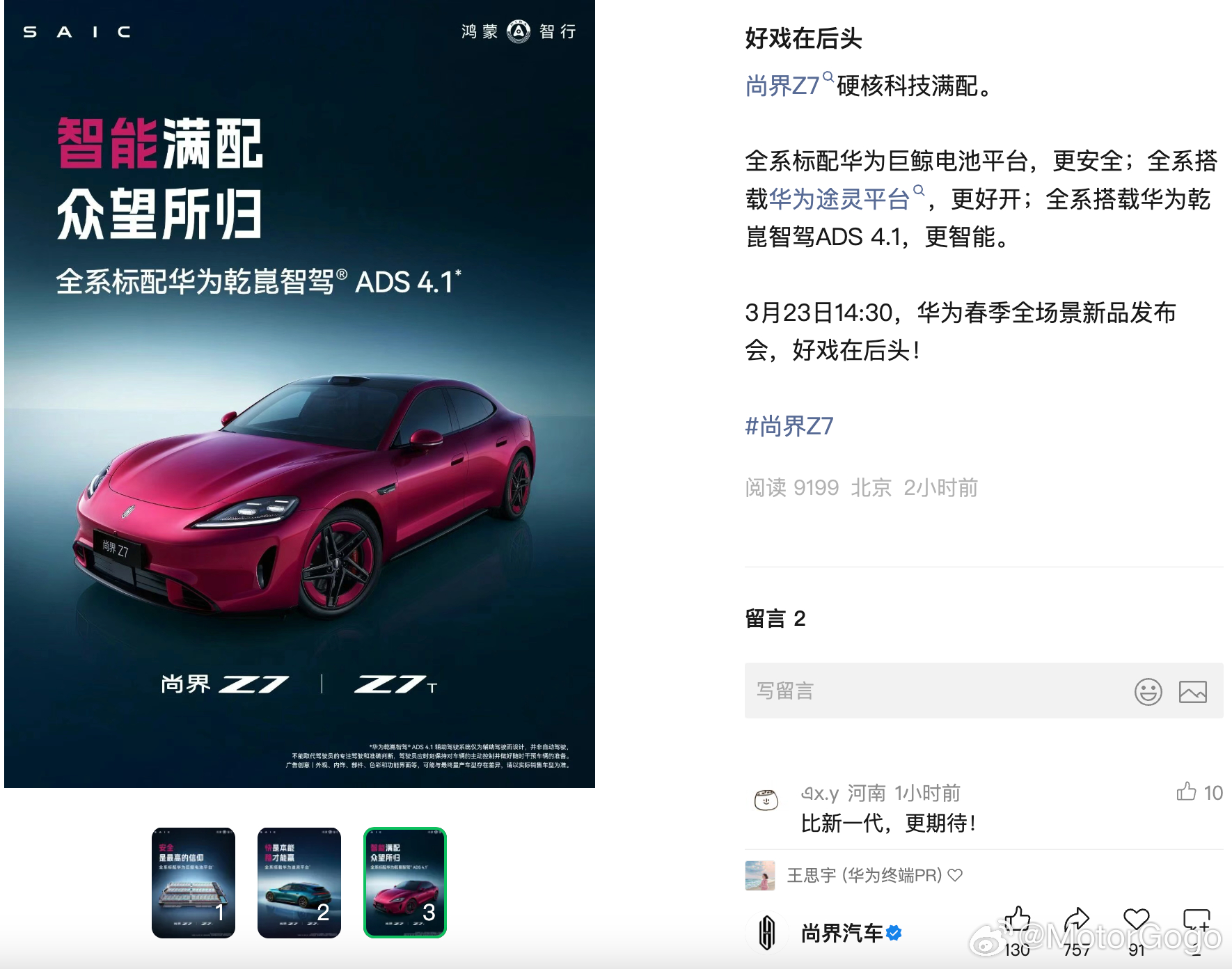 23 号上市,非常期待尚界 Z7 的定价了。