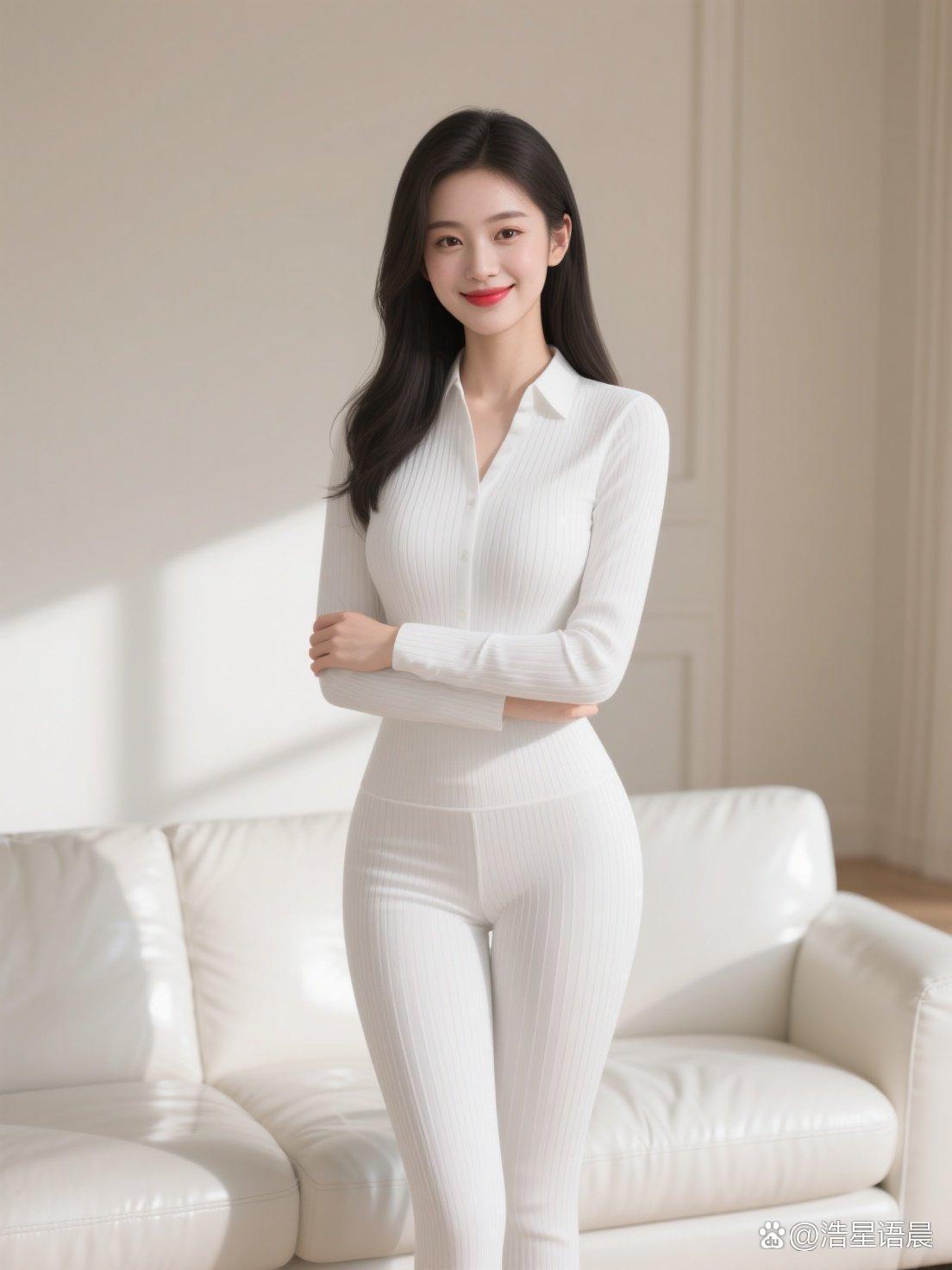 优雅白衣少女,自信满满,红唇点睛,时尚穿搭指南。