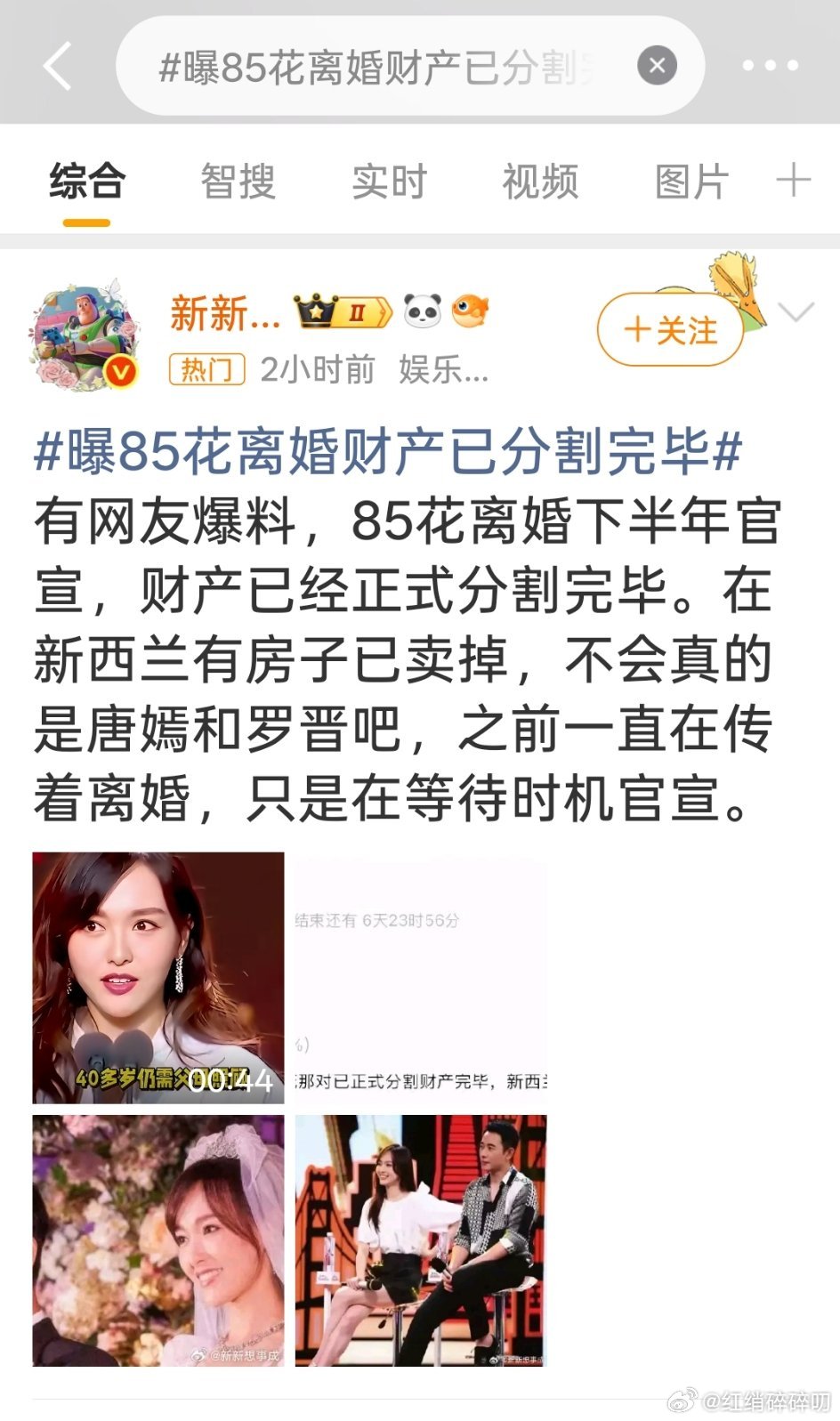 曝85花离婚财产已分割完毕两个热门,看你们谁厉害了