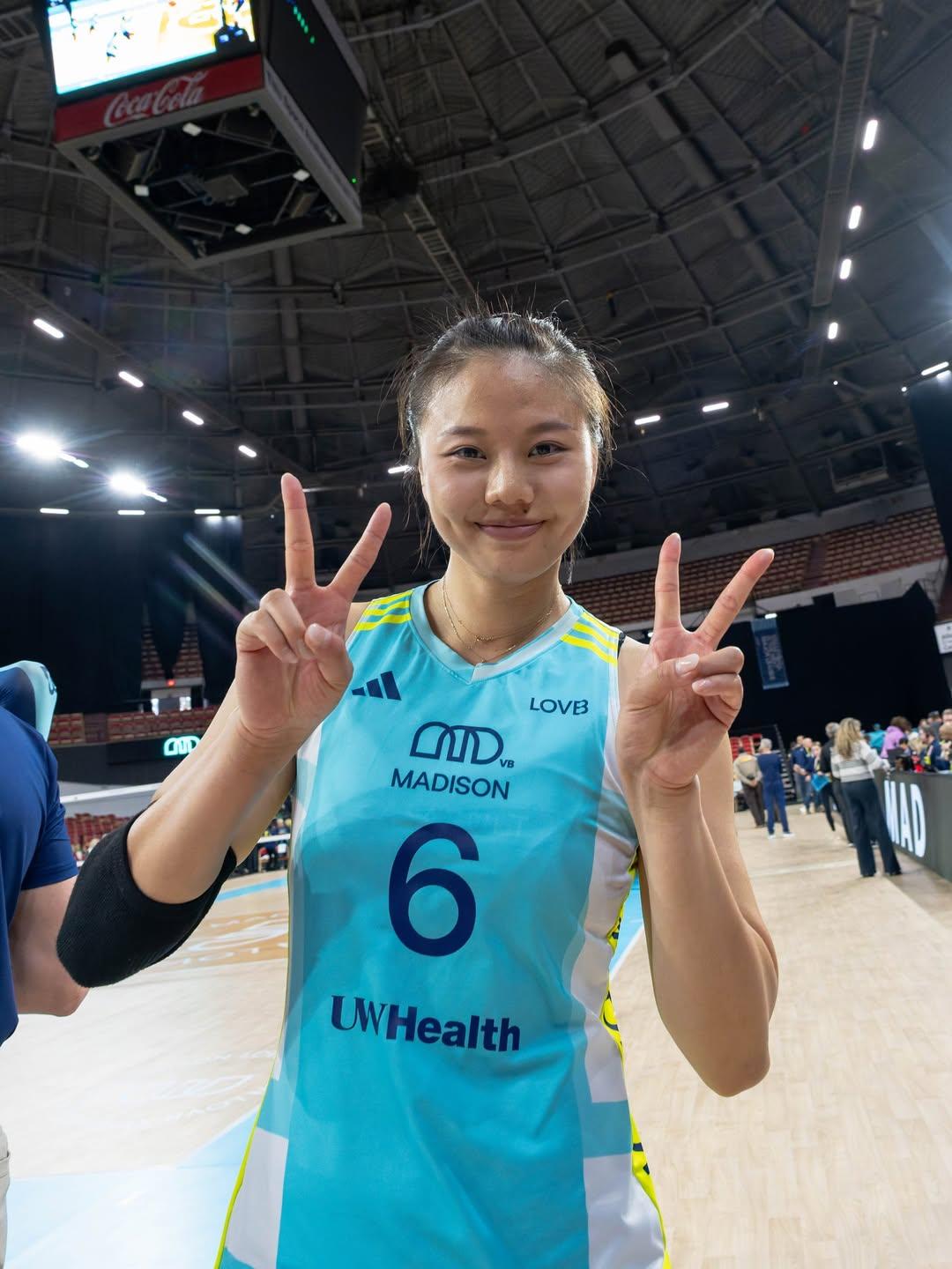 龚翔宇回国争冠军 征战美国LOVB联赛的龚翔宇北京时间今早在王梦洁某音账号留言,其IP地址显示在山东,人应该已经回到国内。 小宇自今年初加入美国LOVB联赛威斯康星麦迪逊队,至今该队共打了15场比赛,5胜10负排名垫底,开赛时曾连赢两场,接着遭遇了八连败,小宇也旧伤复发停赛休养,最近该队势头有所好转,先后战胜内布拉斯加、亚特兰大和奥斯汀,小宇也伤愈复出,状态回暖。在美期间,小宇拿过一次单场最佳,两次单周最佳防守。 小宇这次中断留洋提前回国,应该是为保球队卫冕而被急招回国救火,半决赛首回合脆败天津让江苏夺冠希望渺茫,2号位周页彤、范泊宁撑不起右路目前是该队最大短板,但龚翔宇回国能否阻挡势头正劲的天津实属未知,但比赛会更加激烈、精彩。 龚翔宇 天津女排