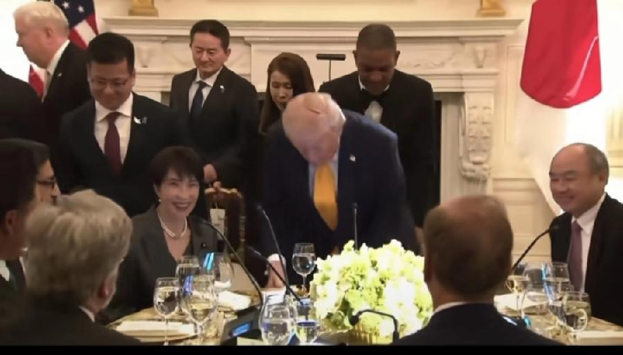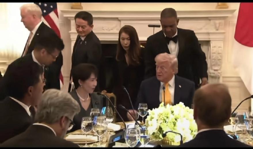 特朗普与高市早苗晚宴,亲自扶椅子,小型圆桌分餐,每人一个长话筒,更像工作餐叙会,特朗普、白宫很少,为来访外国领导人举办晚宴,对高市早苗已经破例了,可见二人私下关系确实好,高市早苗丝毫没受,珍珠港偷袭话梗影响,笑容灿烂,能说能吃能喝,遇事不往心里搁!