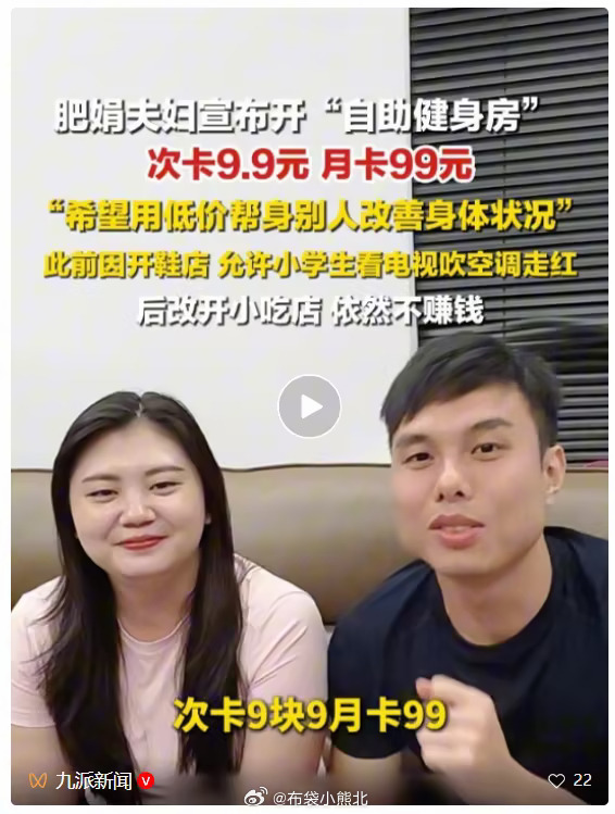 “肥娟夫妇”宣布开健身房,次卡9.9元月卡99元,此前称接触直播带货后感觉不适合