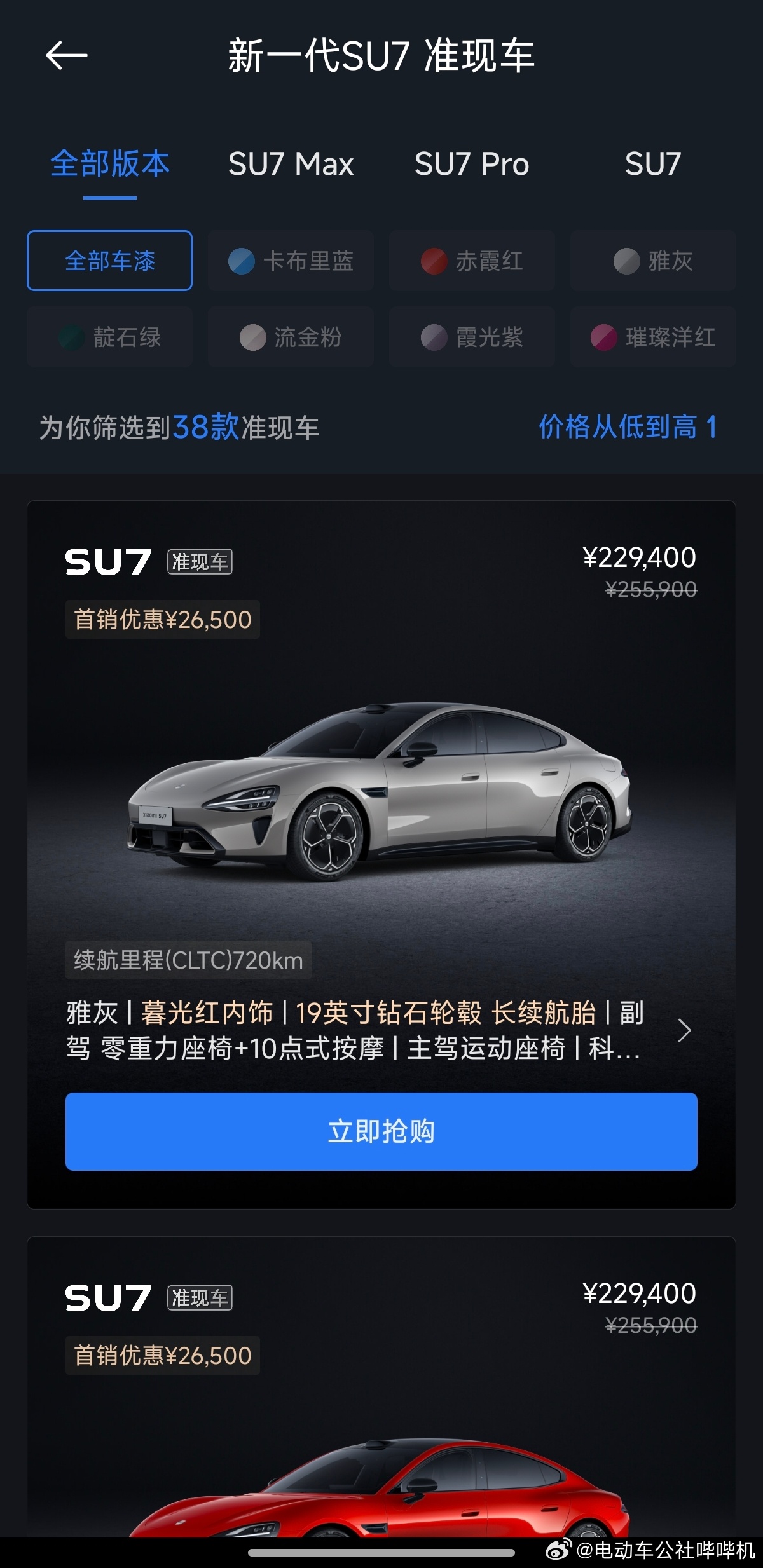现在再来看APP上的时间,有很多现车可以选择,下单后只需要1-5周就能交付。