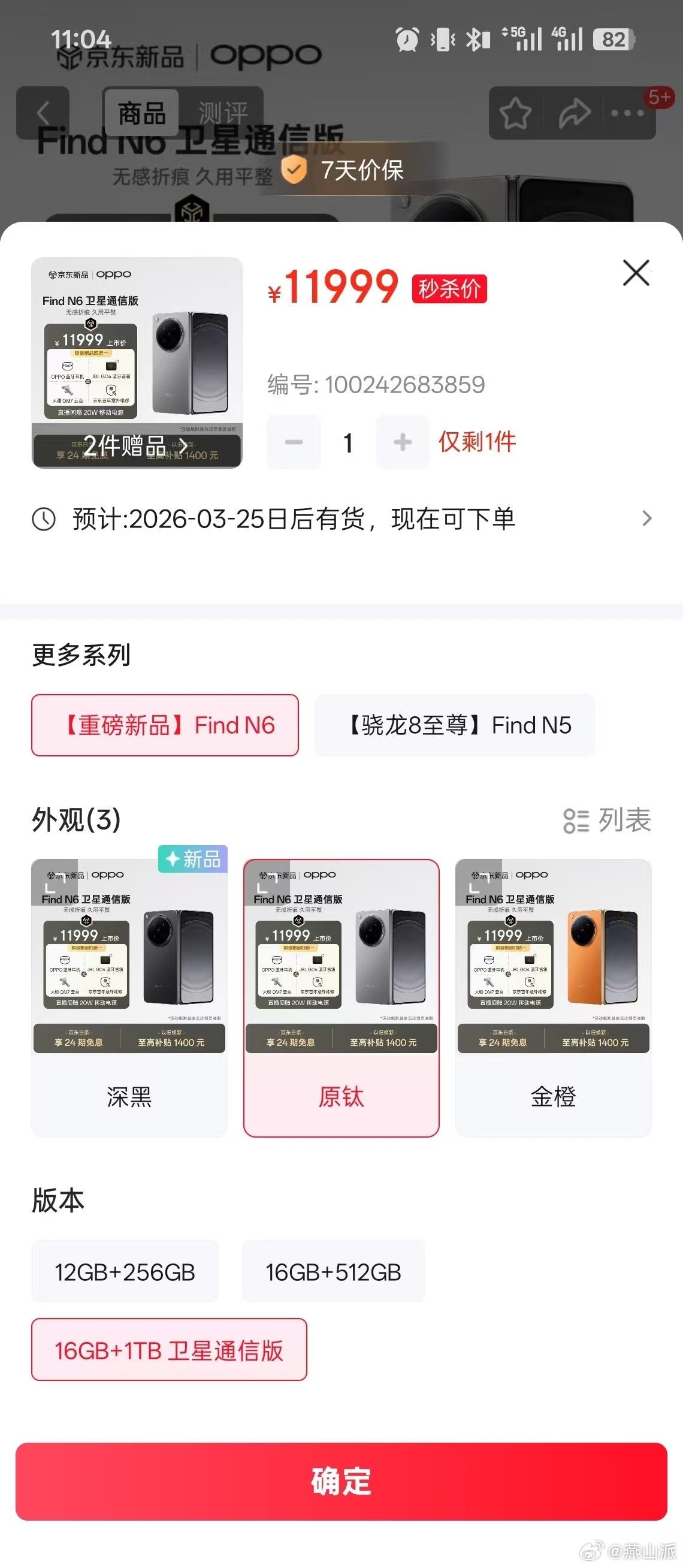 OPPO Find N6今天开售,没想到1TB版这么快就被抢没了,前一秒看还有一台,已下单就售罄了……我对不住大家,咱们上手视频得晚点了