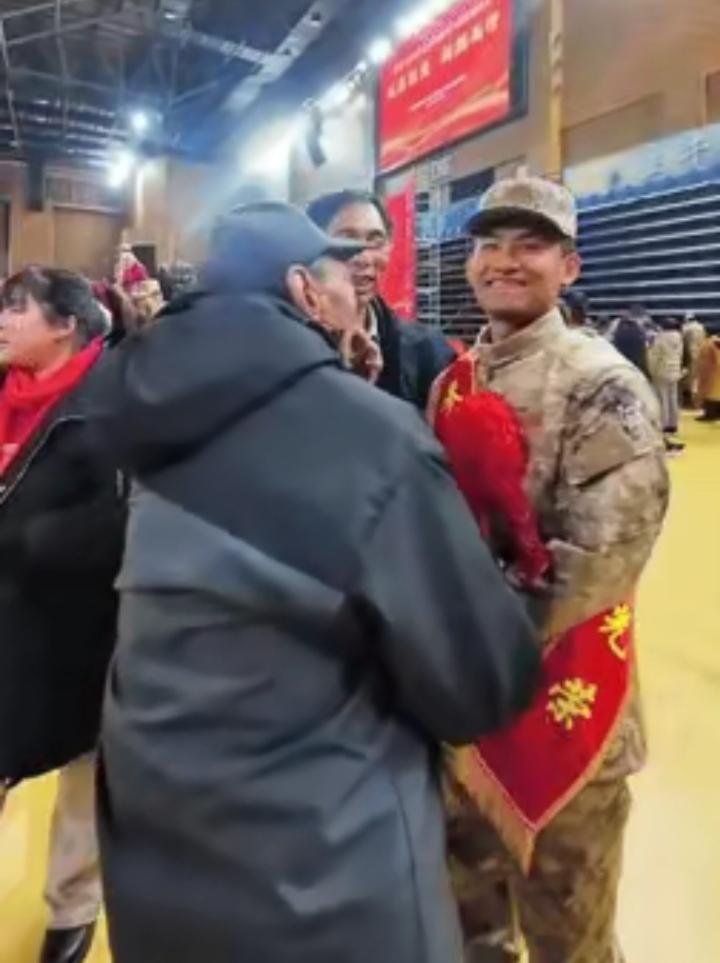 山东日照这幕真看哭了!新兵欢送仪式,一位爸爸怕爷爷赶不上,直接背着年迈的爷爷在人群里一路小跑,气喘吁吁的就为见孙子一面。 找到穿军装的孙子后,爸爸激动地拍后背,爷爷紧紧攥着孙子的手,眼泪止不住流,奶奶在旁边劝:当兵了,别哭! 老一辈没多少大道理,却懂的把孩子交给国家。网友都说:背着养我的,送别我养的,一家三代,亲情和担当全在这几步里,太好哭了!