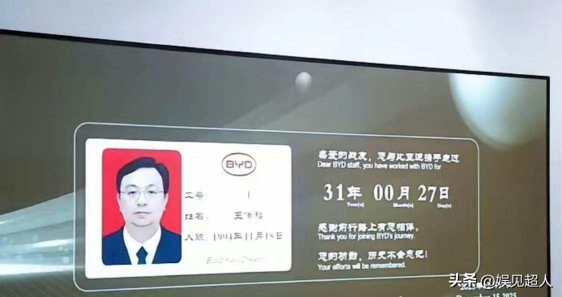 你敢信吗?比亚迪工龄最长的员工,居然是老板王传福自己! 他的工号就是001,从1994年创业到现在,整整干了31年,没人比他更“老员工”。 当年他辞了国企铁饭碗,带着20来人在深圳起步,从做小电池开始干起。没钱买贵设备,就用人工替代,硬生生把成本压到日本对手的几分之一。 从电池厂做到全球新能源汽车巨头,从几十人干到几十万人,他既是创始人、董事长,也是最资深的“打工人”。 31年没挪窝,一路把比亚迪从无名小厂,干成了全球新能源的标杆,这才是真·把公司当成家干。
