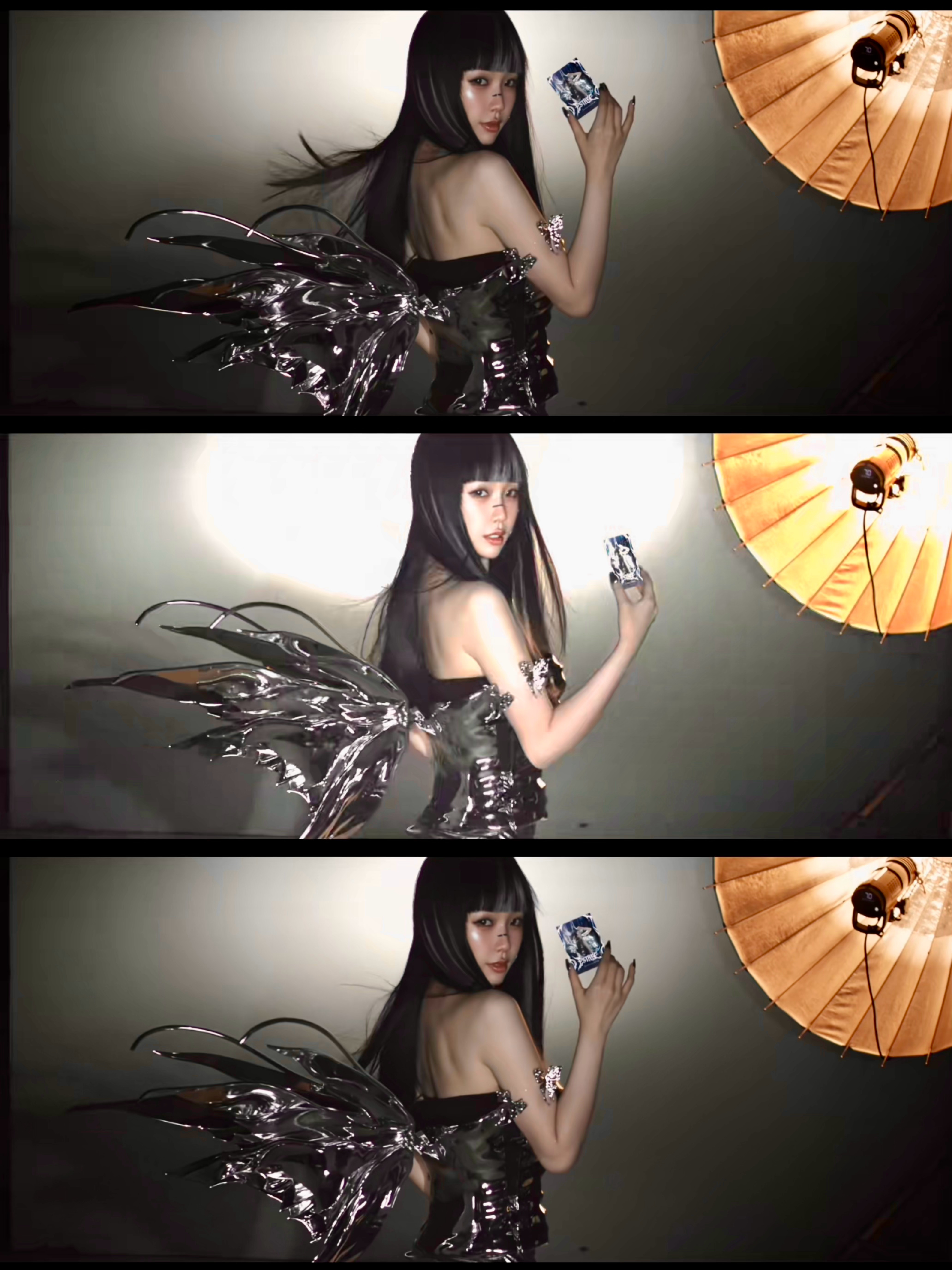 虞书欣全新物料大片上演未来感女战士的多元时刻!挑染刘海搭配银色抹胸蝴蝶裙伶俐飒爽!是百变迷人欣欣子了!虞书欣赛博机械姬造型