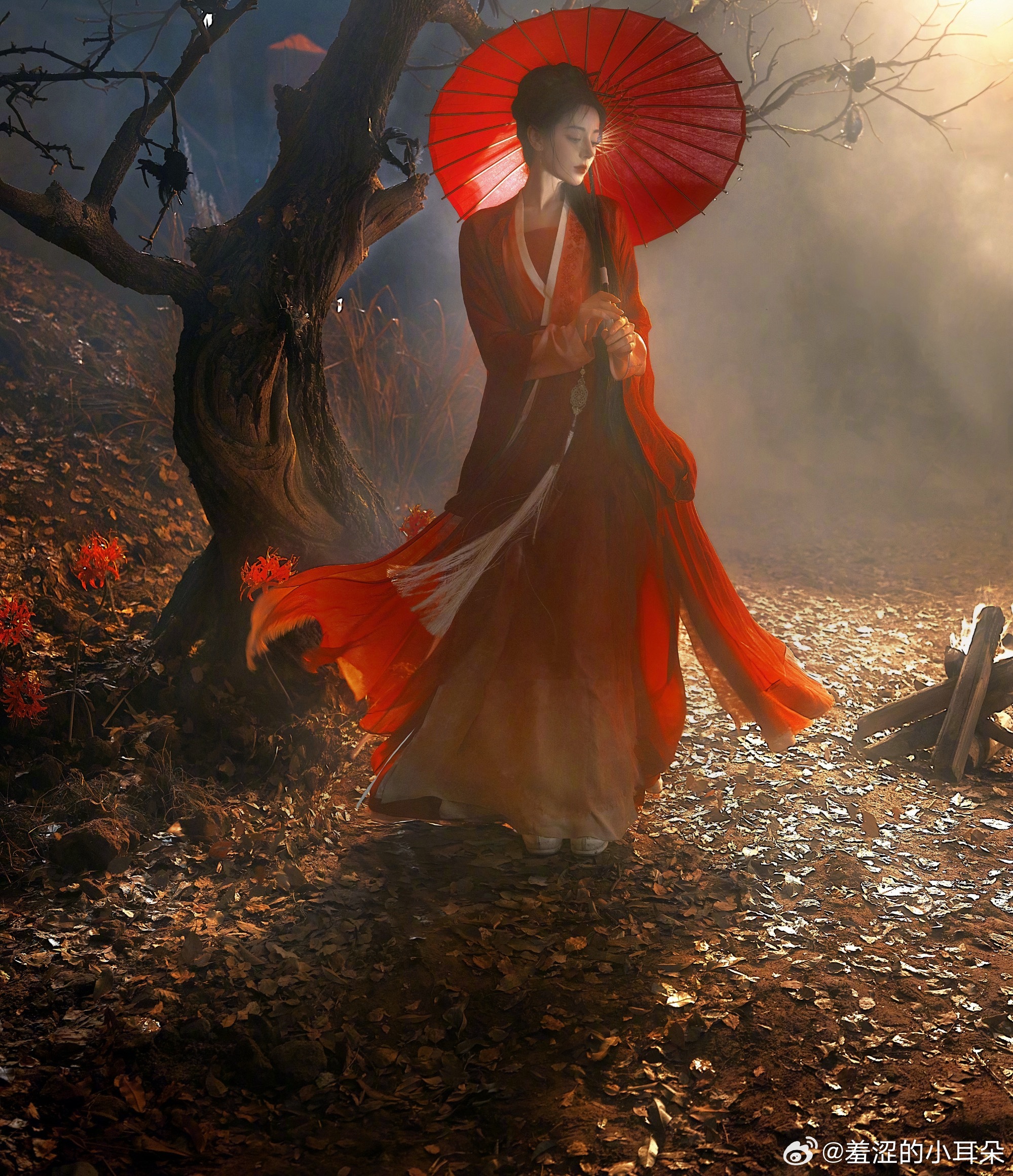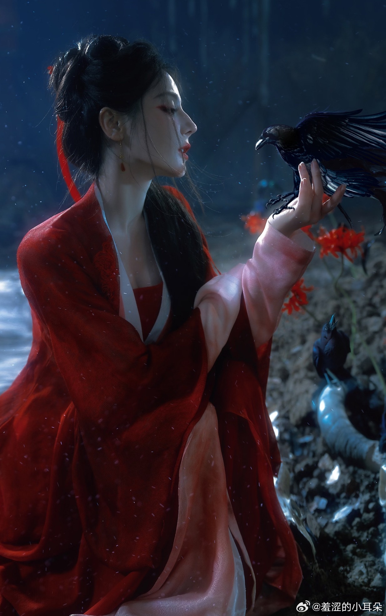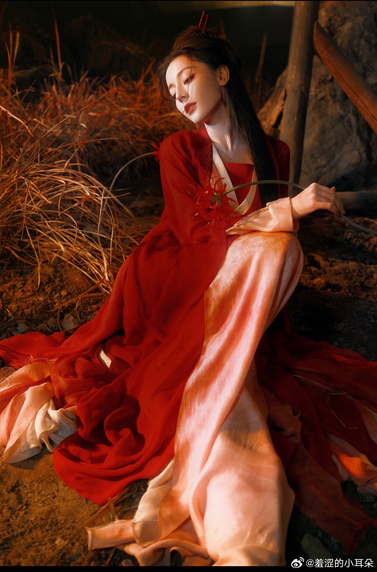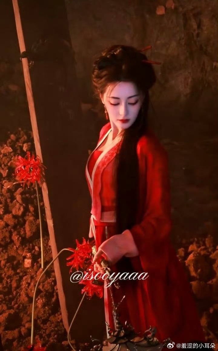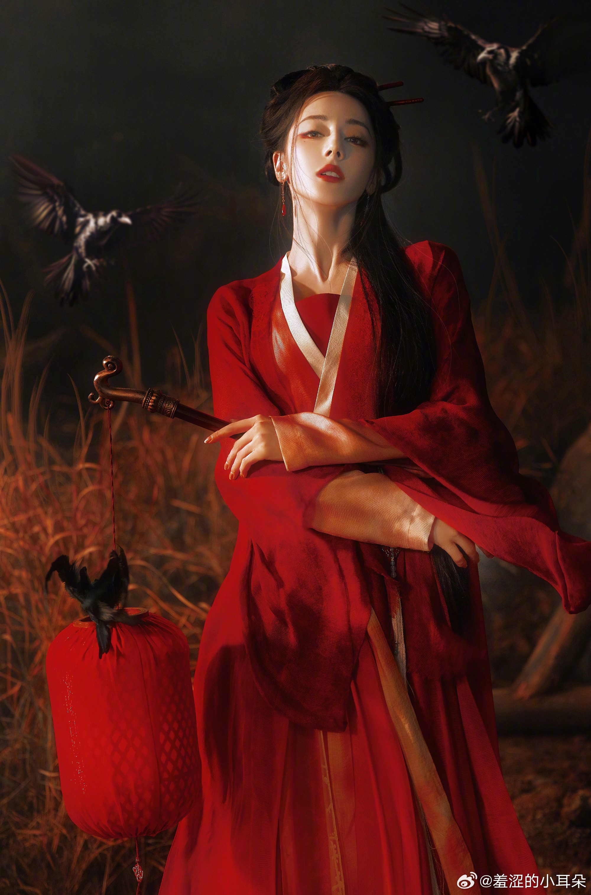 白日提灯这套红衣造型随便拍都是浓浓的古早女鬼味儿